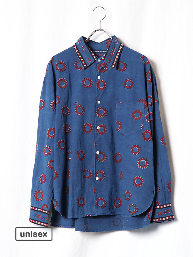 その技法は至ってシンプルですが幾重にも手仕事を重ねて生み出されています。手のひらより一回り程大きい木片に手彫りで版を作り、スタンプの要領でインクに付けては生地に隙間なく、押していく。灼熱のインドでこの動作を数十メートルに渡って行うのは至難の業ですが、これをインドの職人は丁寧な手作業で版を押していきます。