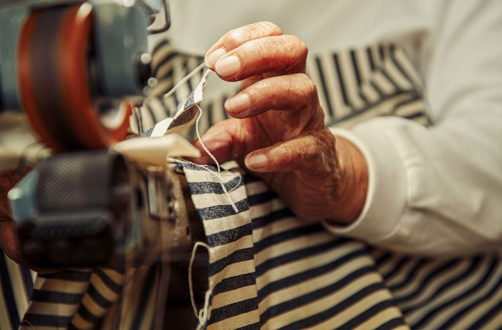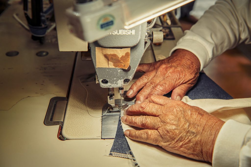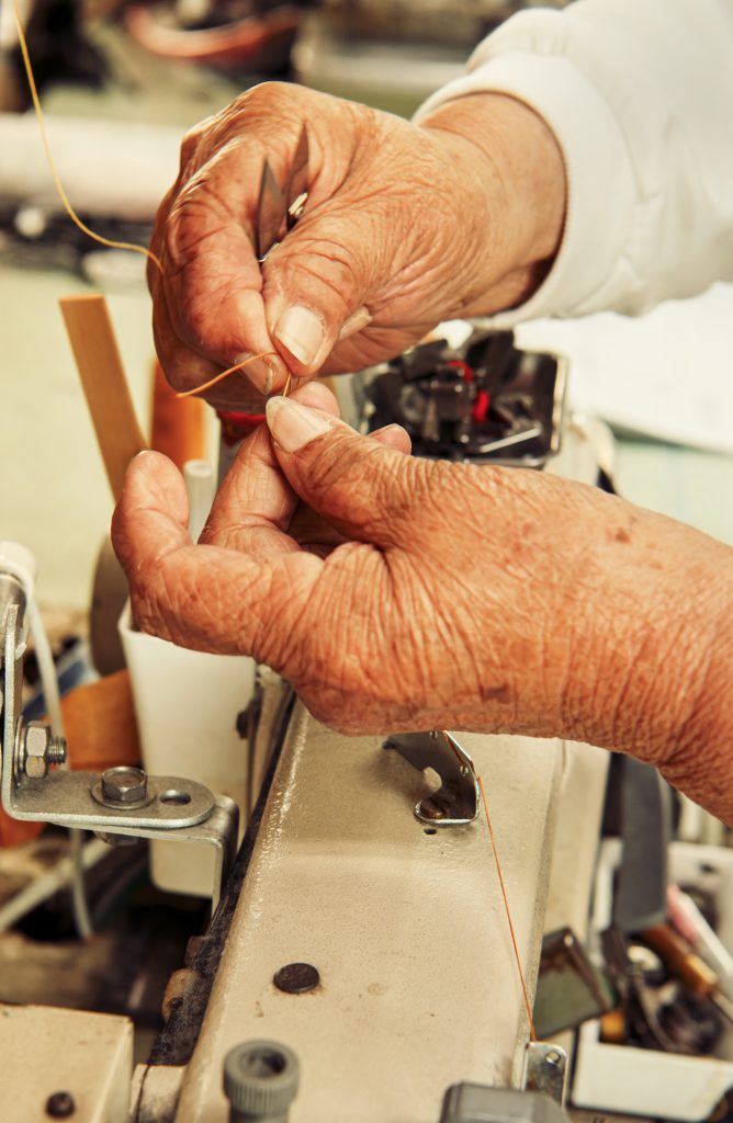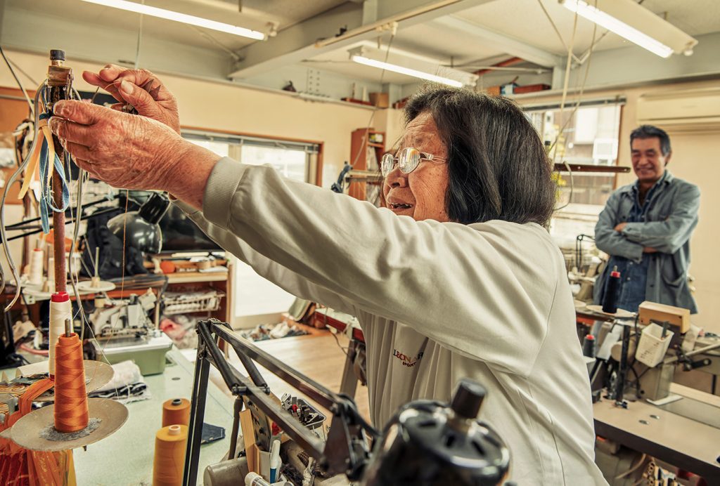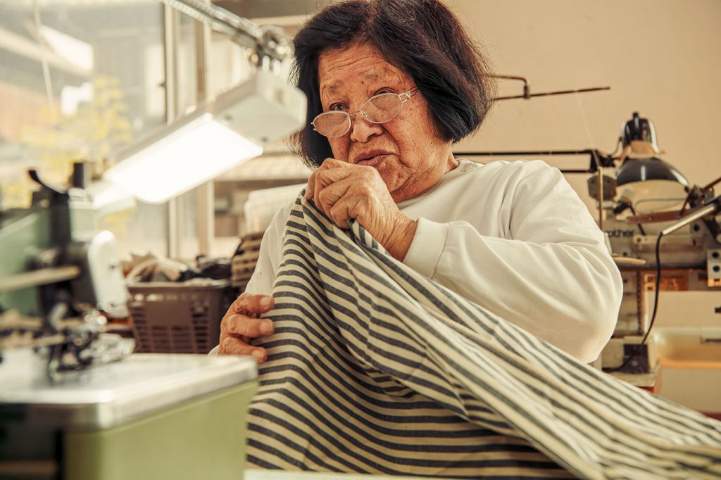 家族経営のこの工場では、90歳のおばあさんも現役で働いており手慣れた様子でミシンを踏み布を扱う姿が印象的だ。