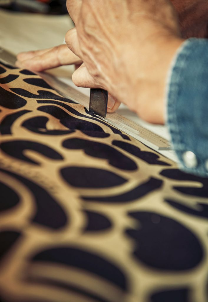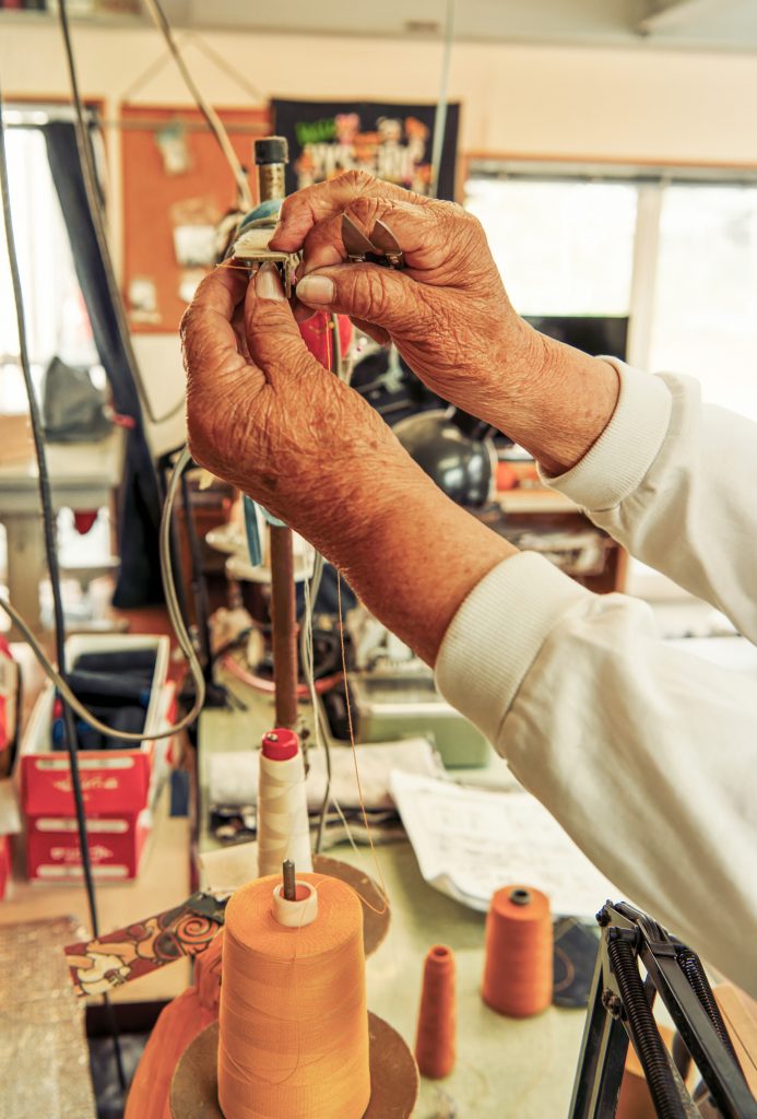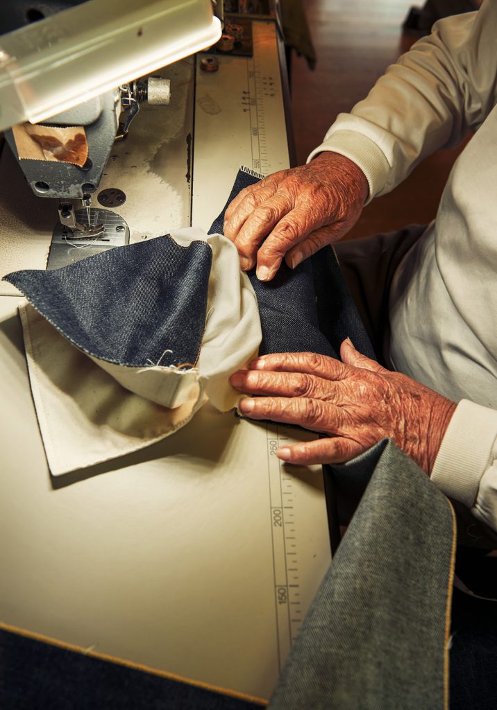 ノミで布の裁断から、ミシンで縫い合わせ、糸の色の指定やポケットの位置など正確に丁寧に製品は一つずつ仕上げられていく。