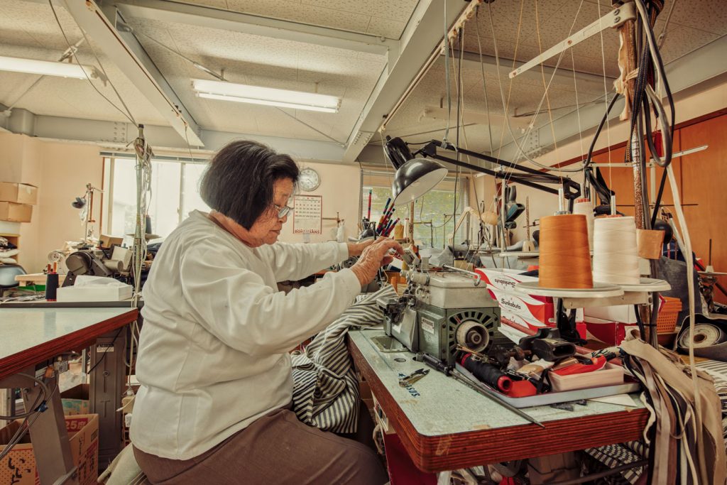縫製工場の内部に足を踏み入れると、所狭しと並ぶミシンやアイロンが目に飛び込んでくる。