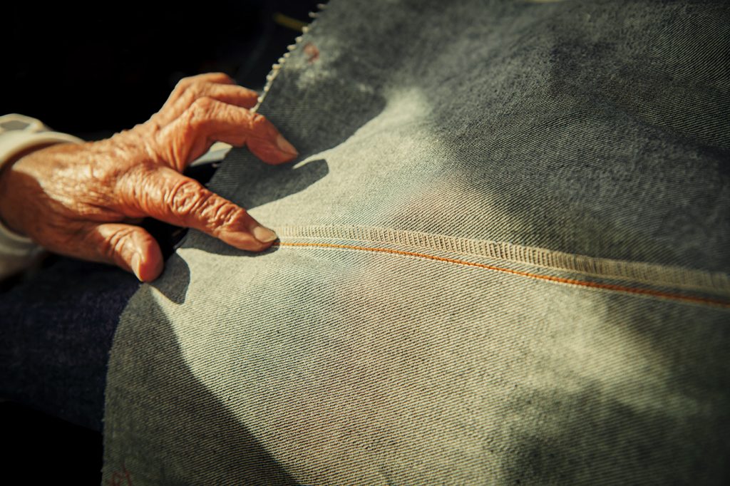 糸の色や番手をどの場所でどう使う、ステッチの運針を1インチ間にどのくらいにするか、カンヌキの幅をどうするか、デニムの耳幅をどのくらい出すか、裾の環縫い(チェーンステッチ)は何mm幅にするか…おもしろいほど、とことんこだわって作りました。