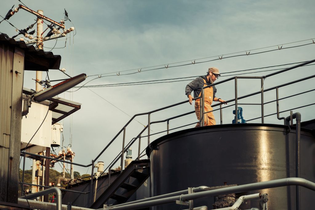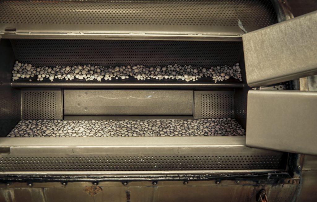 岡山県倉敷市の児島地区を奥に進むと、聞こえてくるのは大きなタンブラーが勢いよく回る音。