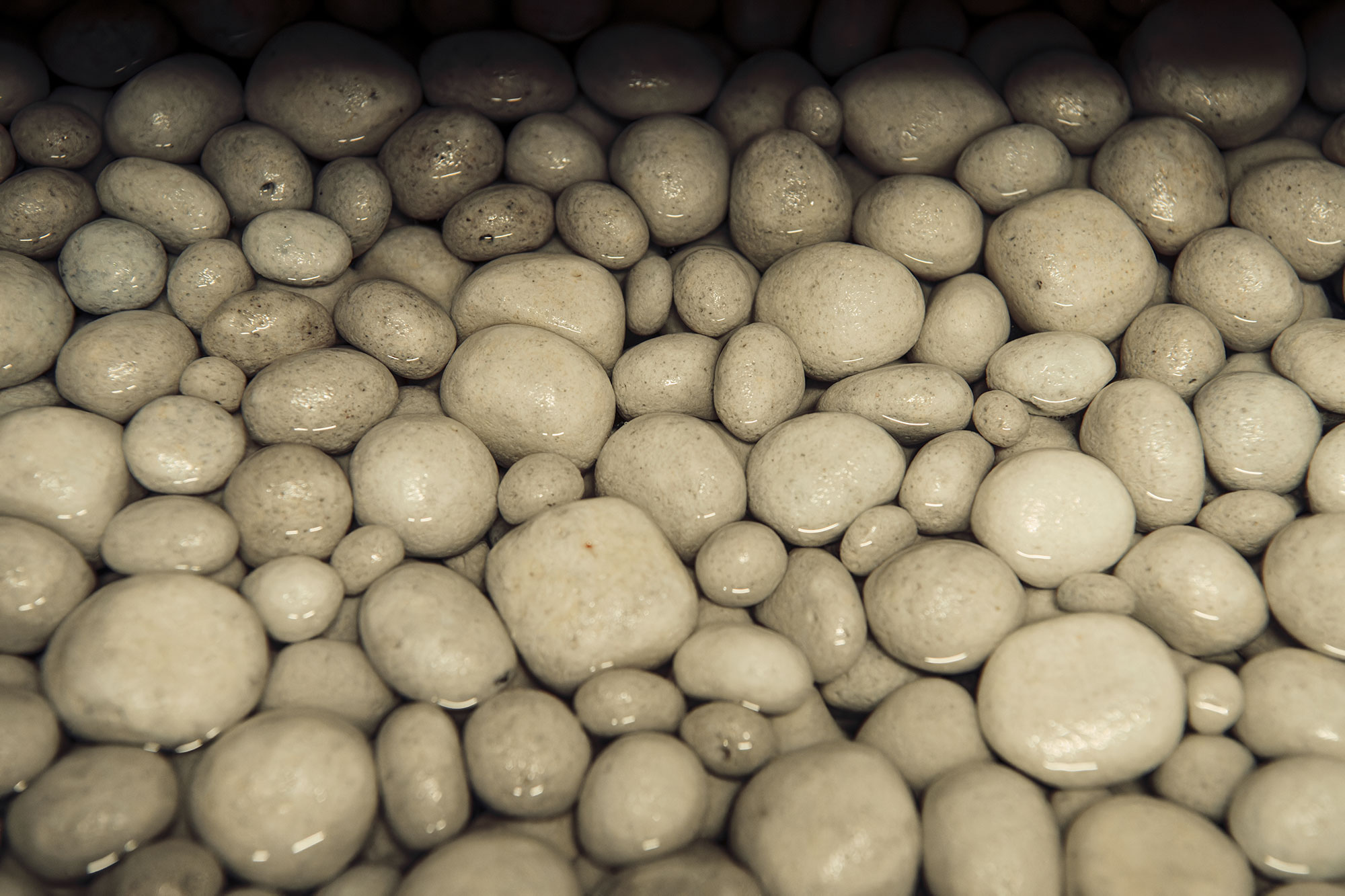 中でも印象に残ったのがダメージ加工の現場。粗く削れた風合いや、長年着込んだような風格を出すために、小石を一緒に投入して生地をこすり合わせる「ストーンウォッシュ」の工程がある。機械の中で服と小石が激しくぶつかり合い、リアルなヴィンテージ感が生まれていく。