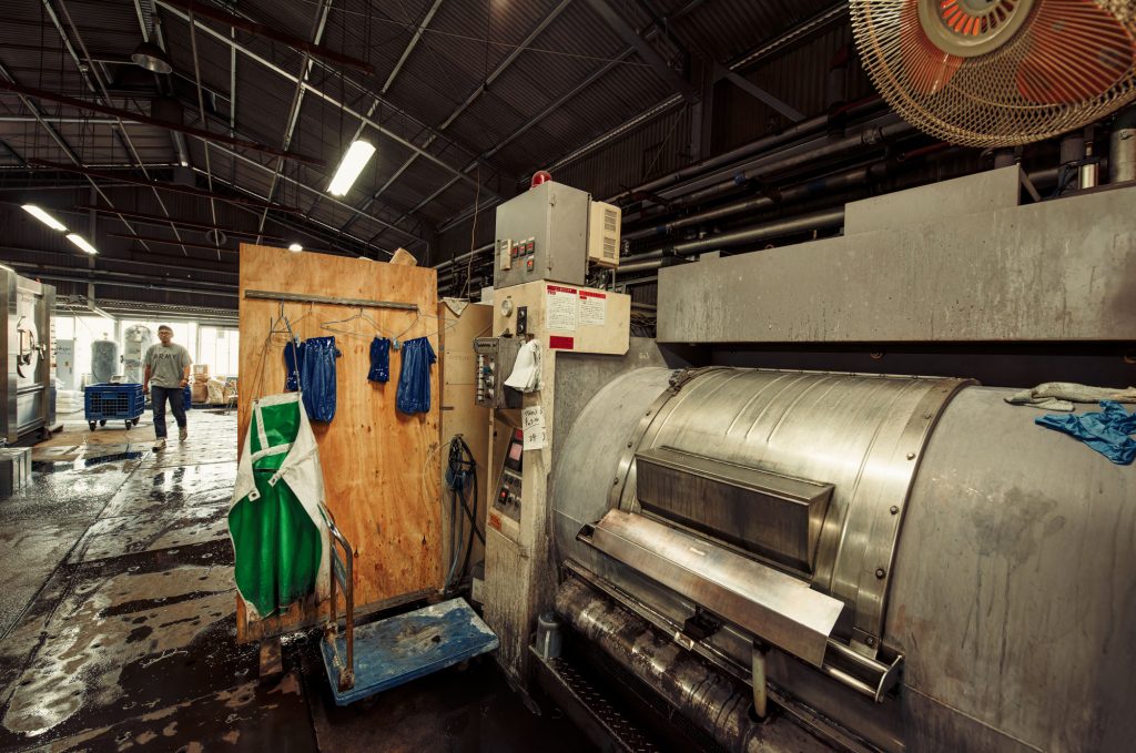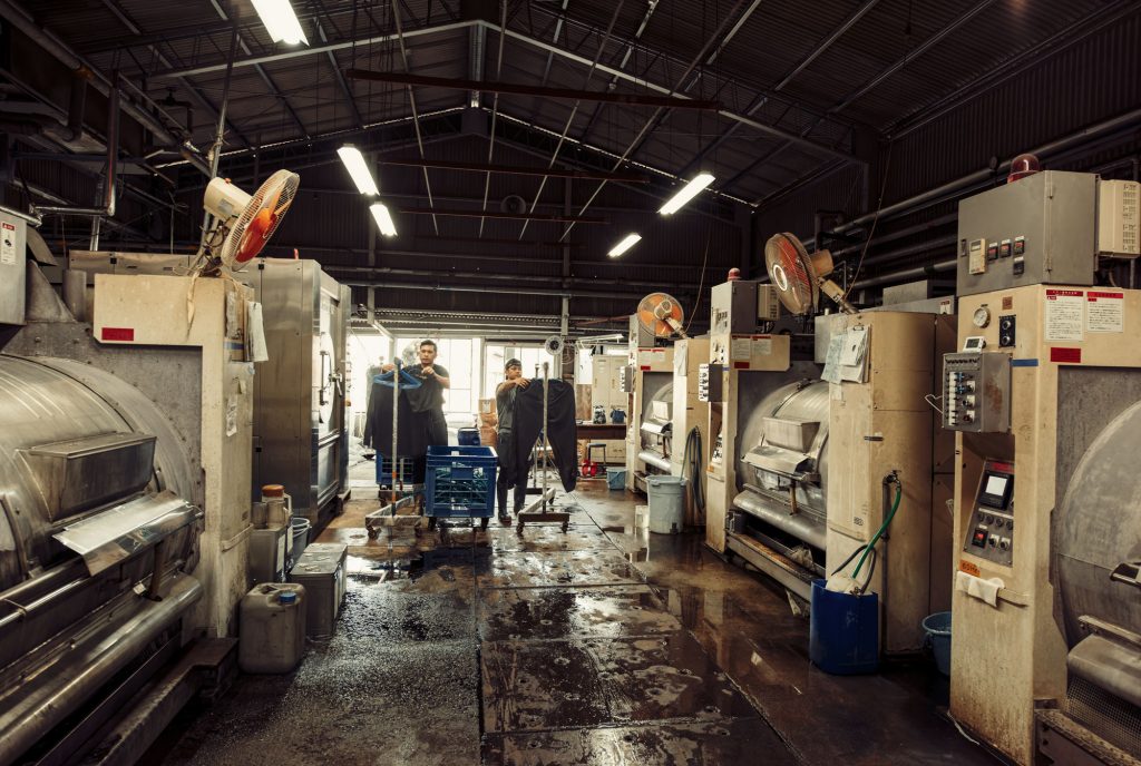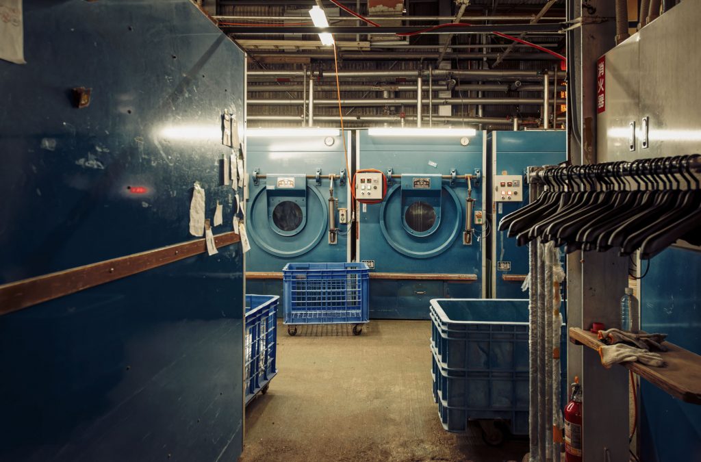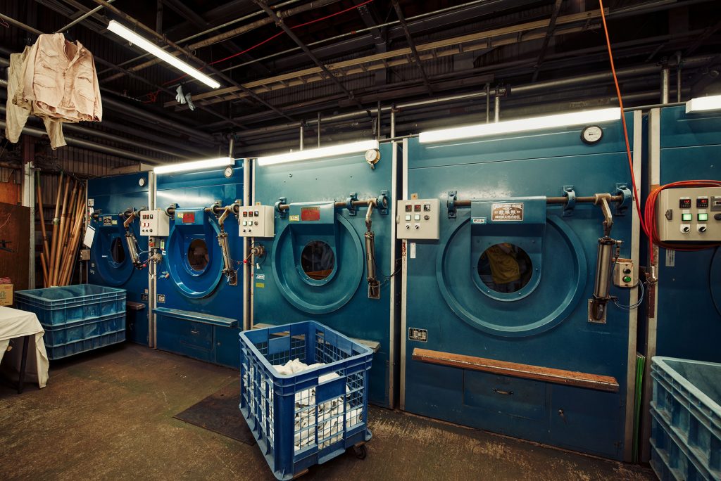 ここは洋服の「洗い」「染め」「ダメージ加工」などを行っている。