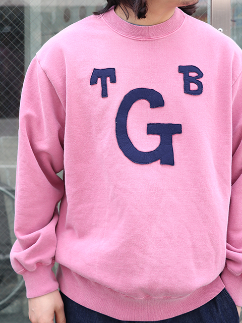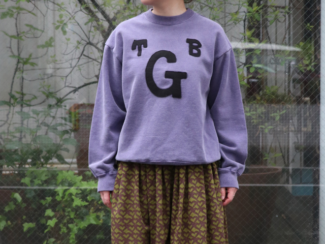 “TGB”のフェルトワッペン付きスウェット。ボディは古着のような独特のあたり感や濃淡ある仕上がりの顔料染め。着込んでいくうちに徐々に色落ちし、経年変化も楽しめる一着です。