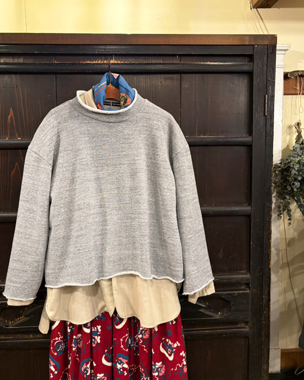 ■ヴィンテージ杢グレー裏毛カットオフワイドスウェット P:18,700