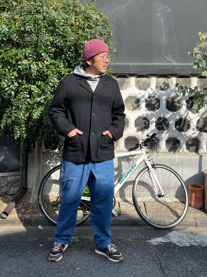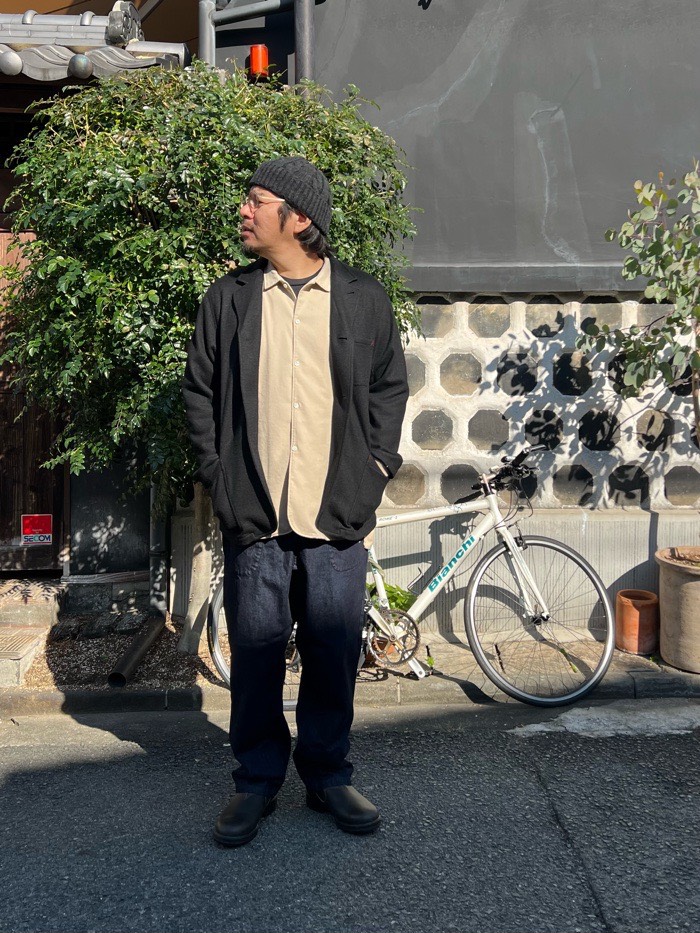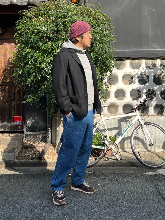 合わせたパンツは秋冬仕様の少し厚めのデニムタゴサクパンツ。