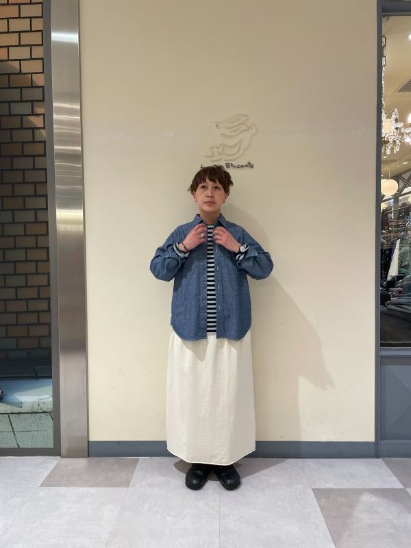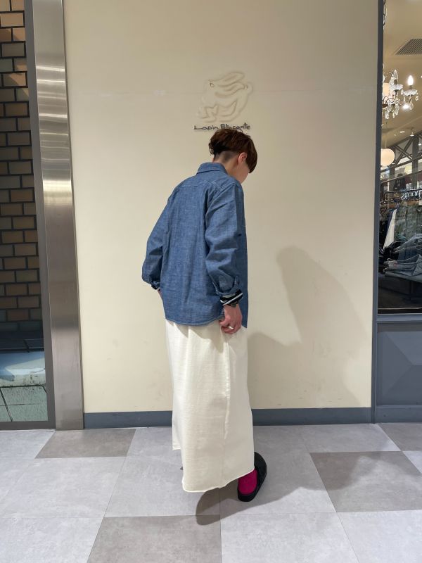 シャンブレーレギュラーワークシャツ 税込¥20,900ーを羽織ってみました。