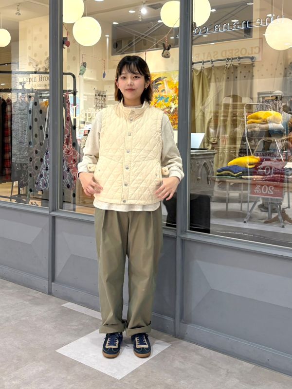 さっと羽織って重ね着できるベストを使った2コーディネートをご紹介したいと思います。
