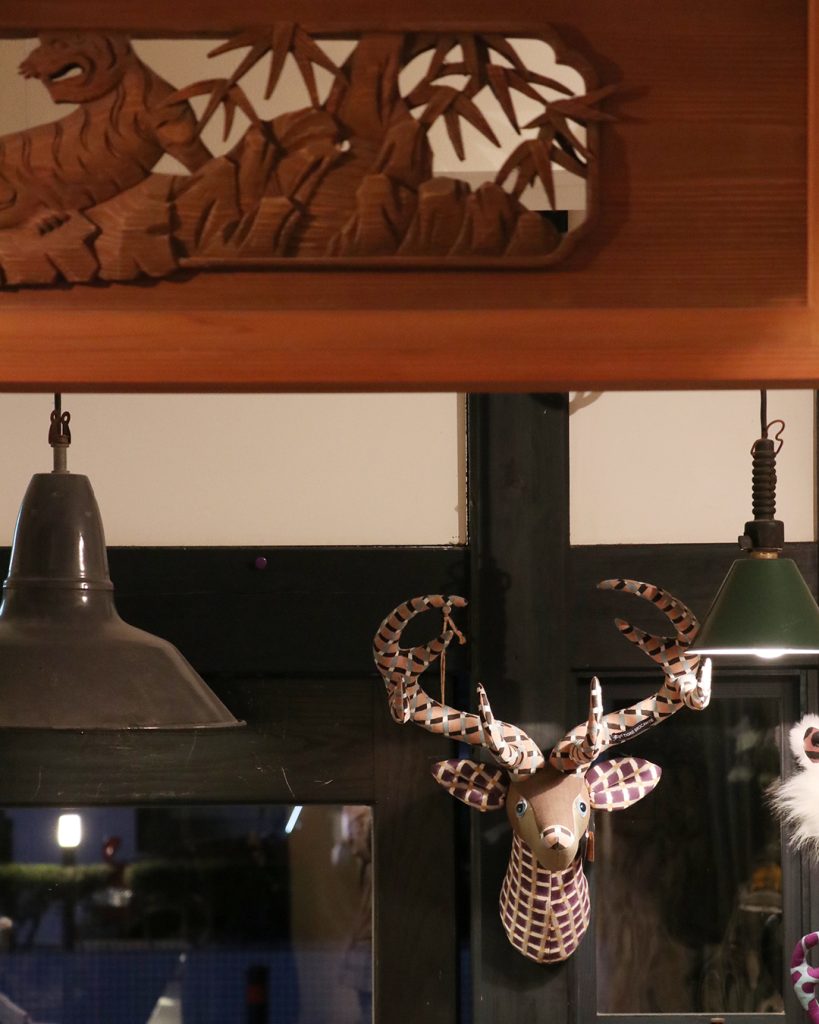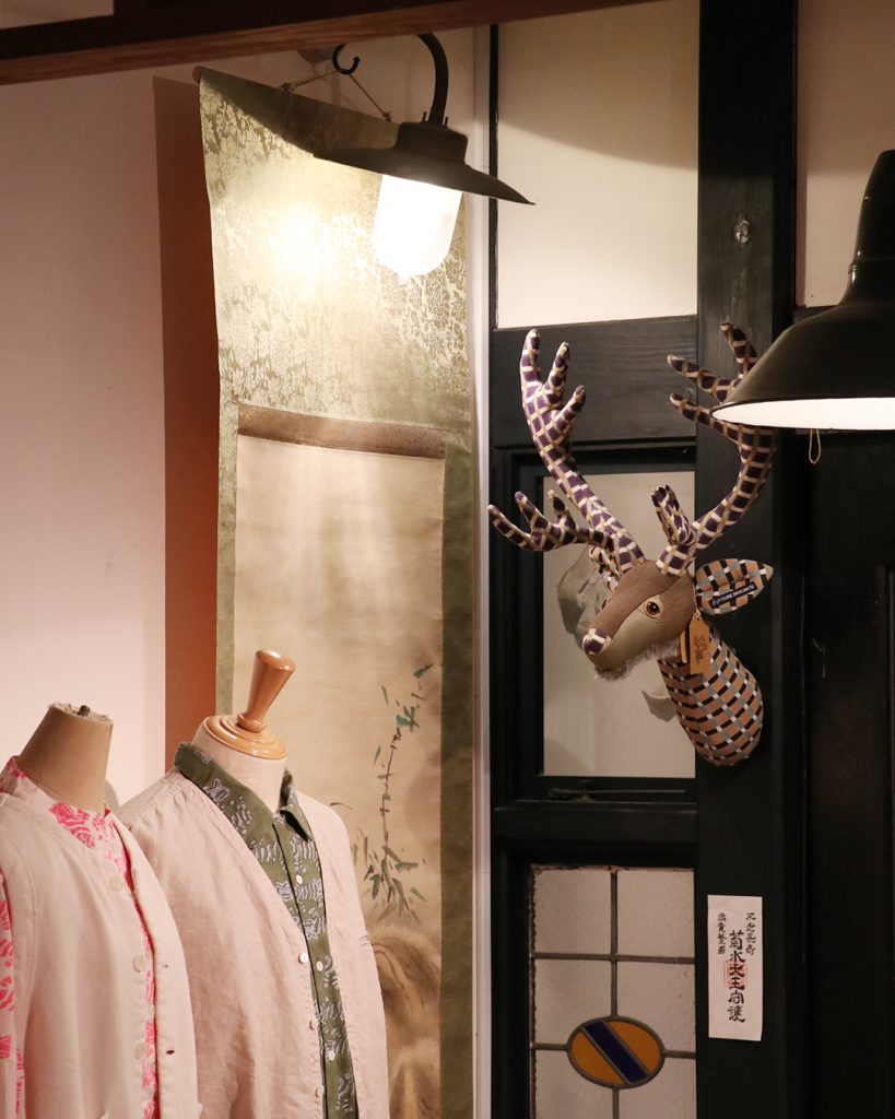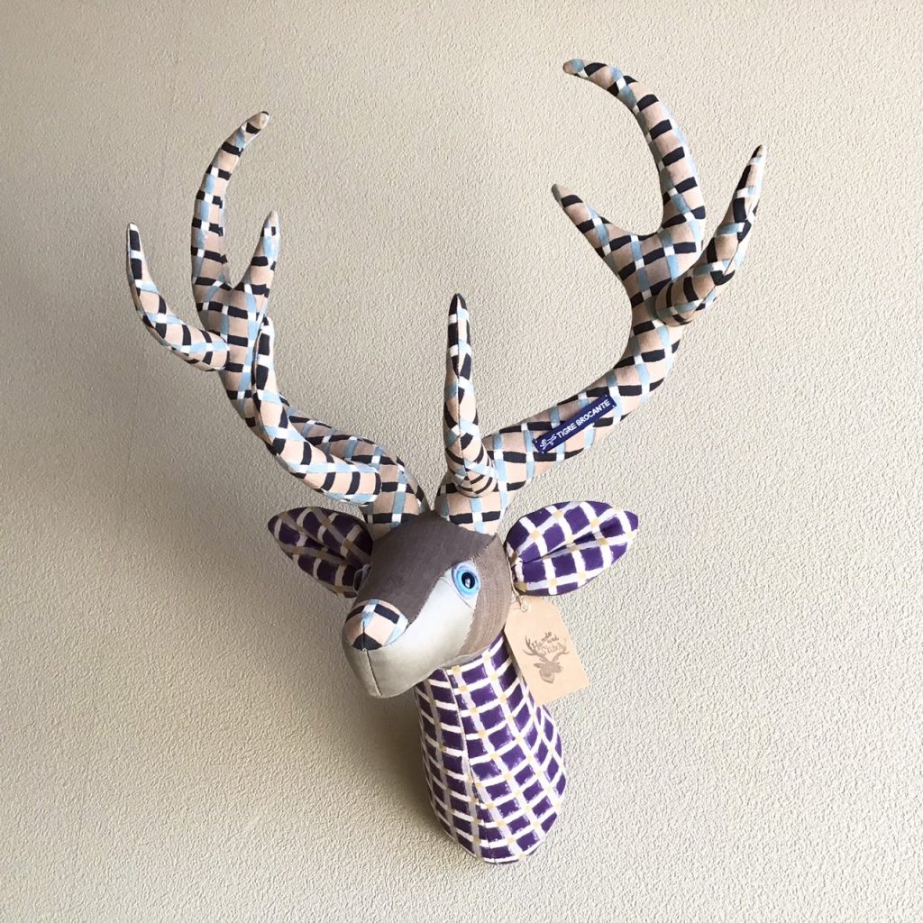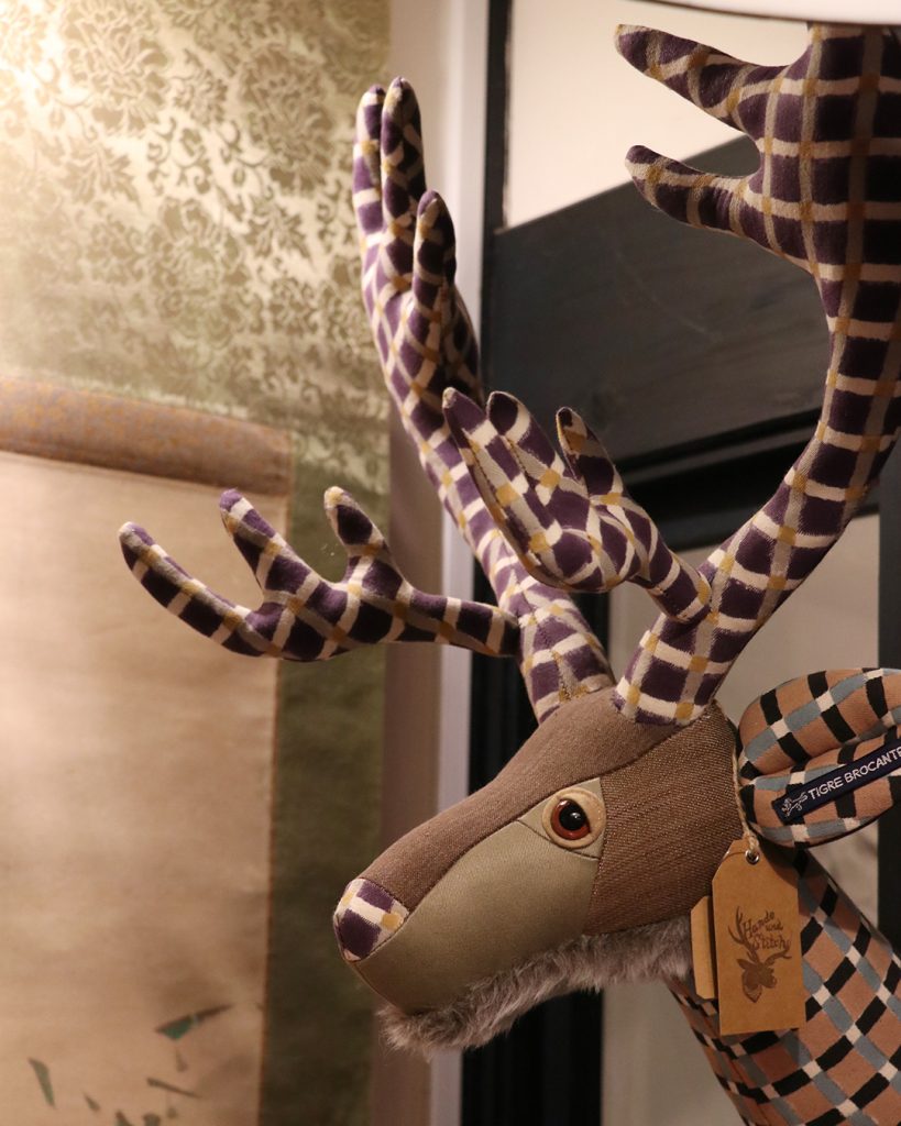 アンティークの和服の格子模様から着想を得てインドの木版ブロックプリントで仕立てたチェック柄。渋味と素朴が相まった素材で作るアニマルトロフィー。畳や欄間、掛け軸、床の間…和室のしつらえにもしっくりくる雰囲気に仕上がっています。*price...40,700~44,000yen