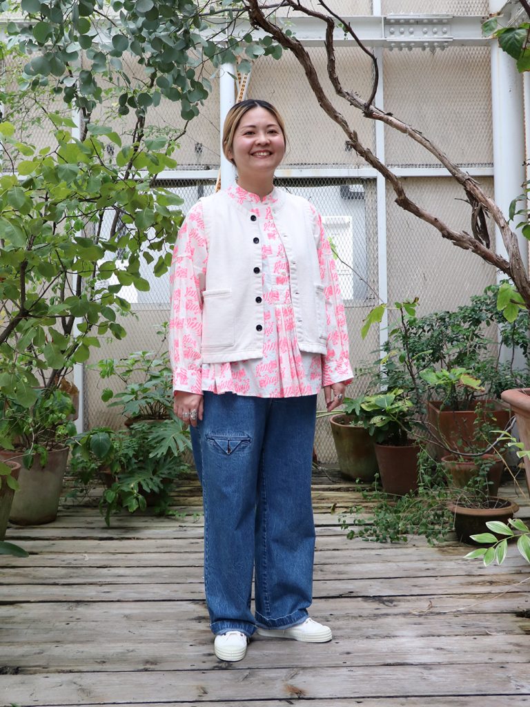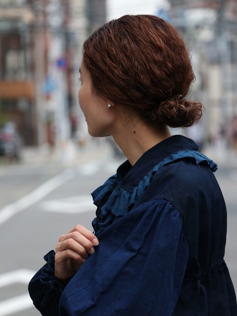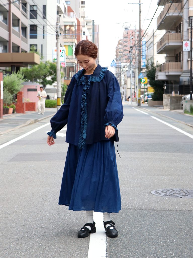 ・藍の古布フェザーフリルブラウス P:77,000 COMING SOON