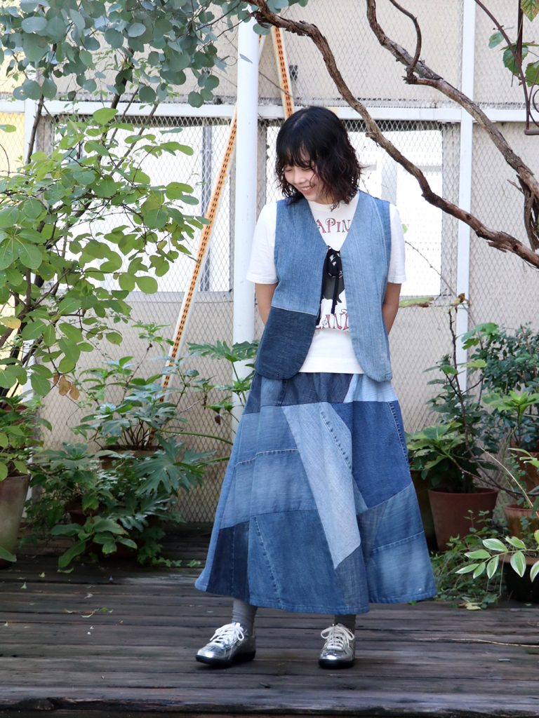 ・デニムMIXフレアランダムパッチスカート P:41,800