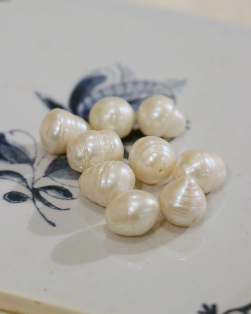 ナチュラルに層を重ねたタイの淡水パール。一点ずつ個性が異なる趣き、こちらもトレードビーズを同じくシルバービーズとの組み合わせでお仕立ていたします。