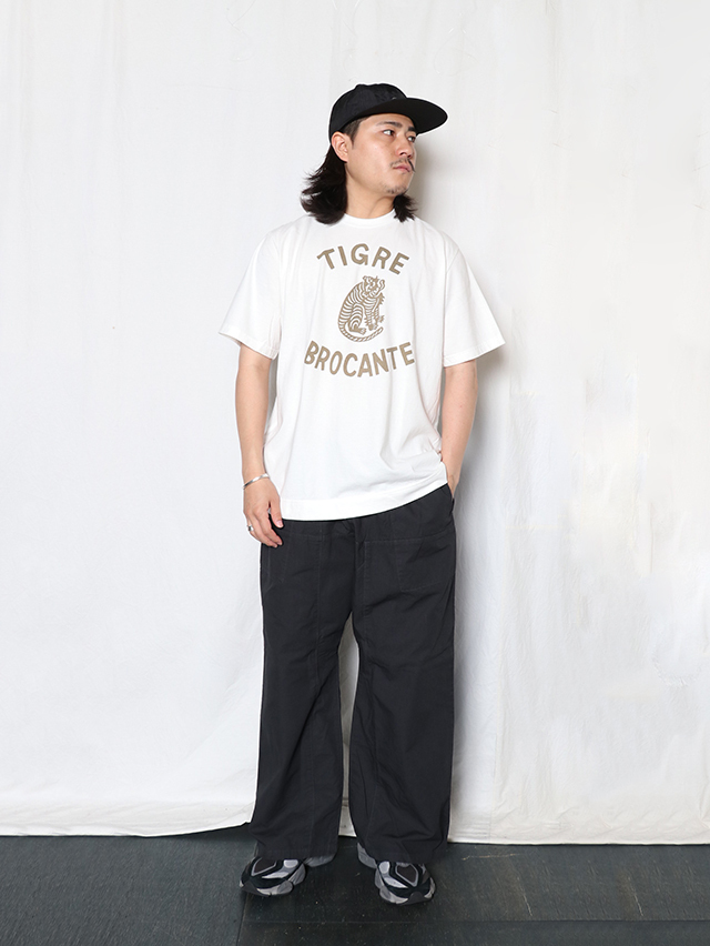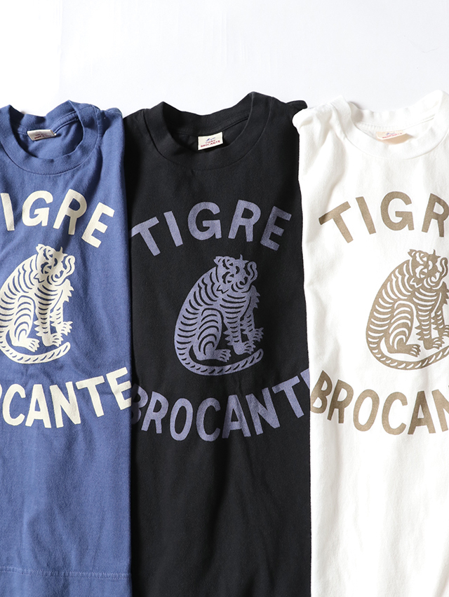 よつめ染布舎の小野豊一氏とのコラボTシャツ、トラのデザインが入荷しました。【よつめ染布舎】日本の伝統的染色技法である型染(かたぞめ)や筒描(つつがき)を用いて布を染め、衣服やのれん、手ぬぐいなど日々の暮らしの布を中心に制作されている染工房です。暑さ長引くこの季節、カラー違いで今年もティグルTシャツをお楽しみください。