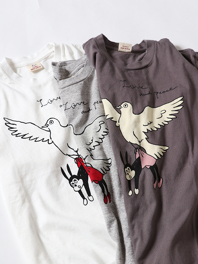 夏の新たなナッティーTシャツが到着しました。ピジョンに吊り上げられたナッティーの愛らしい表情がポイント。サイズも新しくXLサイズを追加し、最大5サイズ展開です。夏の一枚に是非お試しください。