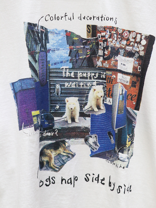 ネパールの街中、風景を撮った写真をコラージュしたプリントTシャツ。生地は肌触りに定評のあるオリジナルカットソー生地でご用意しました。型は身幅広く、ゆっくりとストレスフリーな着心地のベニスビーチ型、オーバーサイズですが丈は短めの作りなので重くならずすっきりとした着用感です。