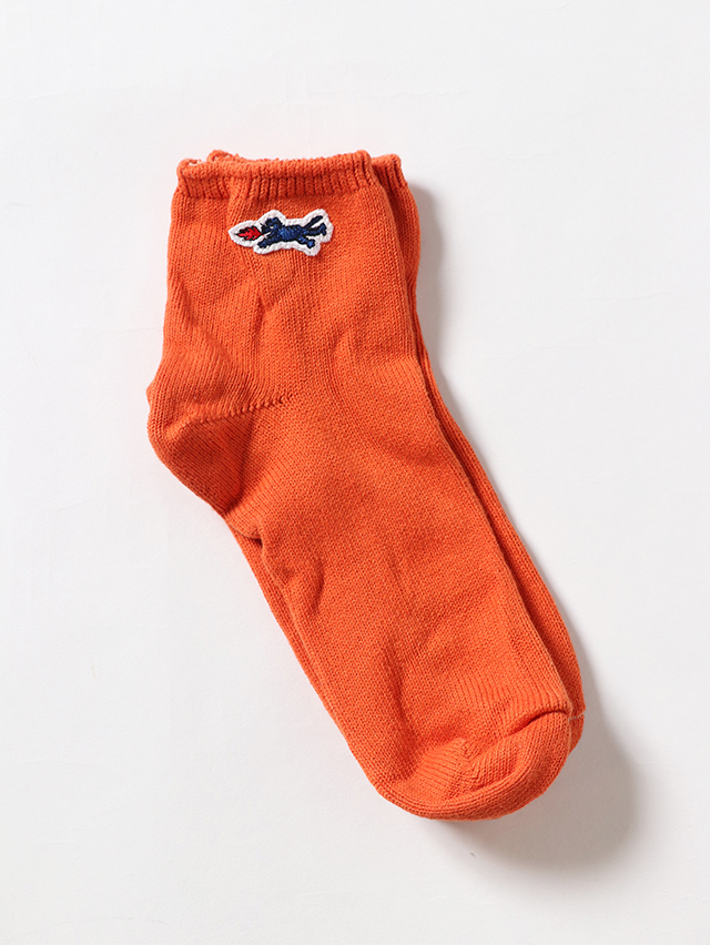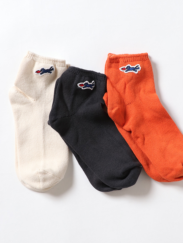 お馴染みのファイヤーティグルワッペンがついたショートソックス。カラーはオレンジ、チャコール、キナリの3色。履き心地柔らかな一足、ギフトにもおすすめです。