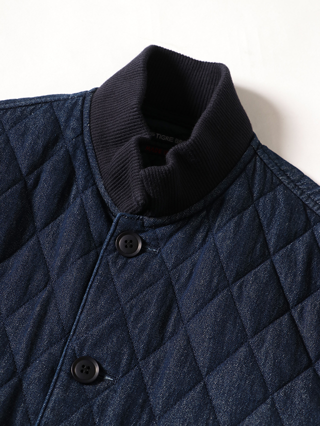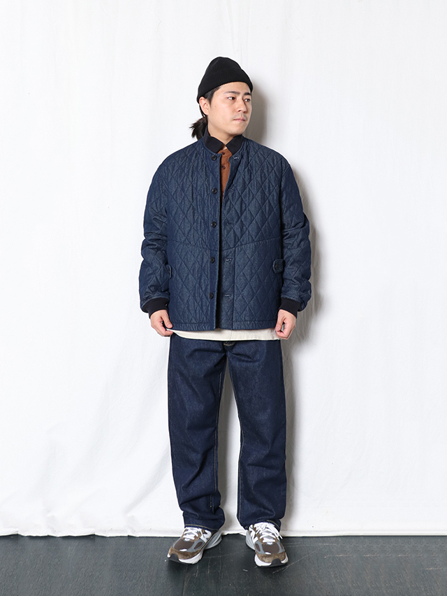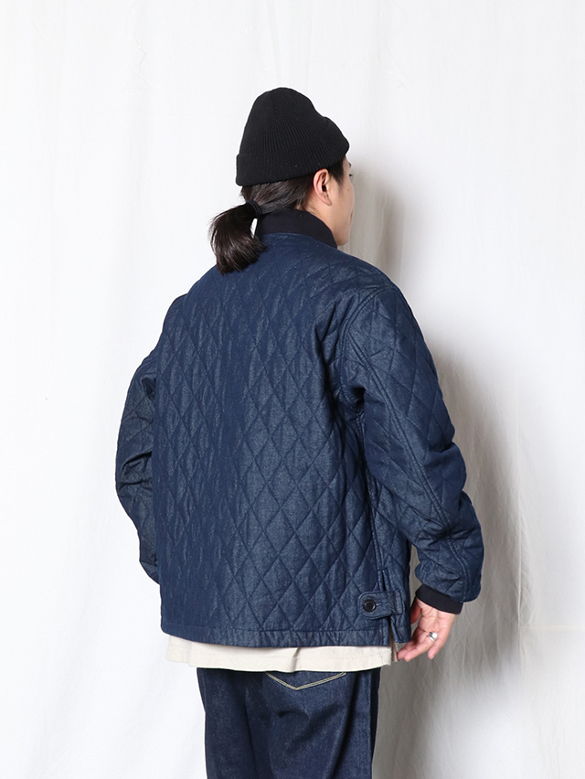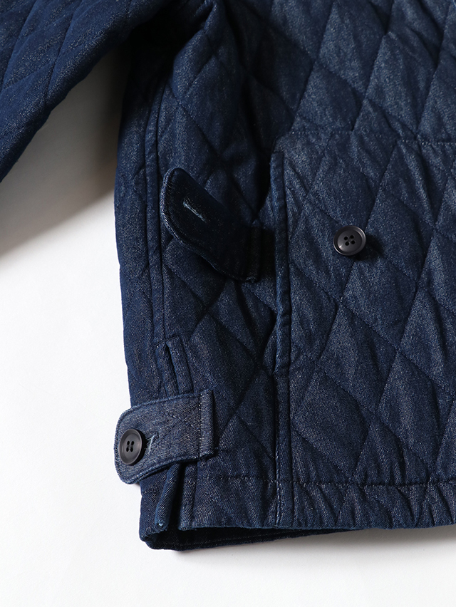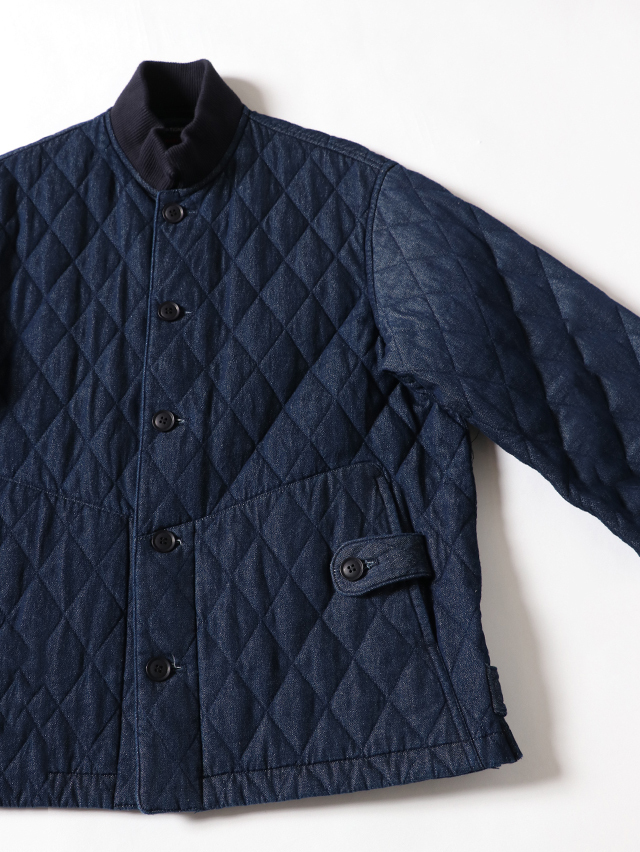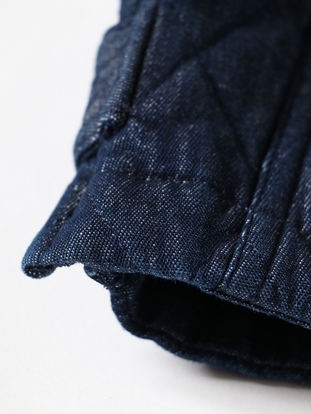 人気のデニムキルティング。リブ付きのジャケットが出来上がりました。素材は程良い厚さ7オンスのデニムのキルトを使用しています。着膨れないすっきりとしたテクスチャの生地です。すっきりと軽やかな着心地です。
