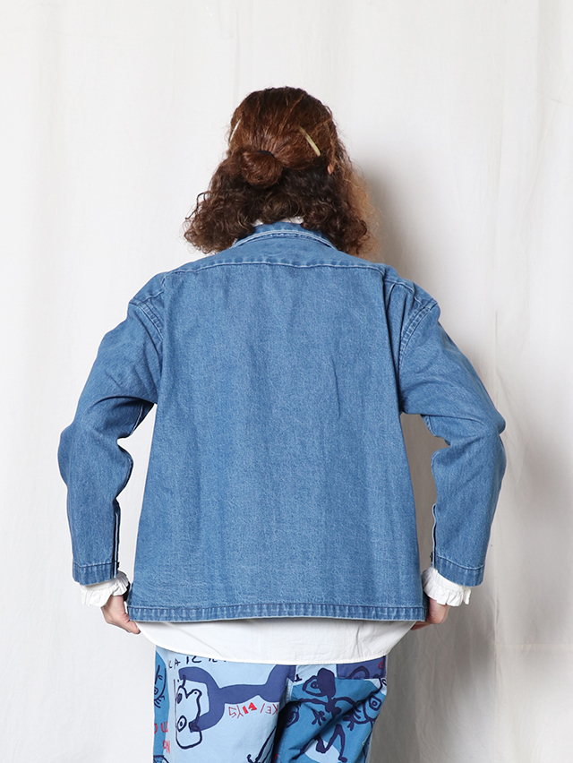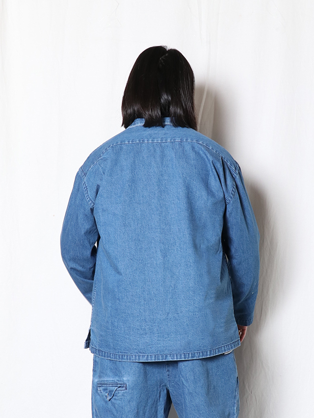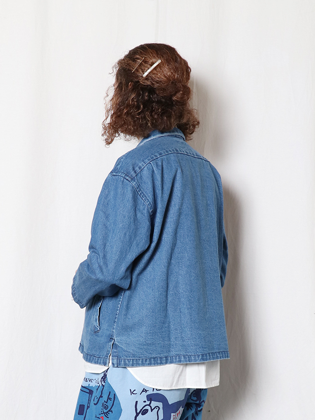 程よくしなやかな10オンスのデニム素材から作る、Foremanジャケット。今までシャツジャケットとして出ていた型を少し厚手のデニムで仕立てました。身幅広く、イージーな着心地のジャケット。たっぷりとしたサイズ感は様々なインナーとも楽しめそうです。