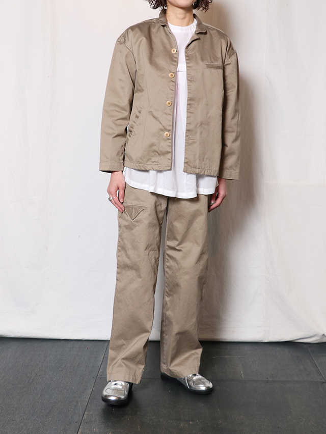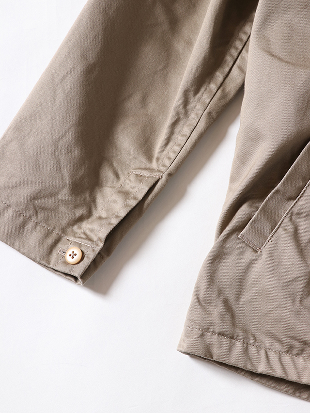 比較的柔らかなウエストポイントチノを使用したForemanジャケット。身幅広く、チノ生地ですがシャツジャケットのように着れる一着。洗いこんでいくにつれ、柔らかさ風合いが出てきます。今の時季には厚手インナーとの合わせも楽しめる一着です。