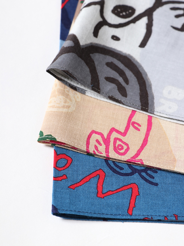 柔らかな肌触りのコットン素材、ポケットに忍ばたり、首もとのアクセントに。ギフトとしてもオススメです。
