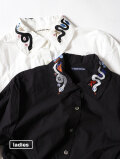 上質なコットンタイプライター生地を使った、秋冬新作のワンピース。形は切り替えからたっぷりのギャザーが入り、裾がふわりとしたワンピース。襟部分には花とヘビの刺繍が入っています。ヘビには豊穣神・天候神「復活と再生」。弁財天の化身、神さまの使いとされ崇められています。また幸運をもたらすモチーフです。刺繍はネパールの職人が手振りミシンにて手作業で行っています。手作業ならではの温かみある風合いをお楽しみください。