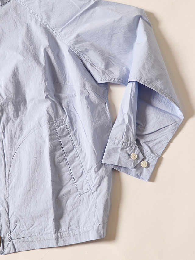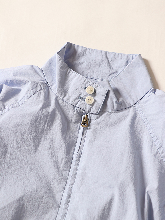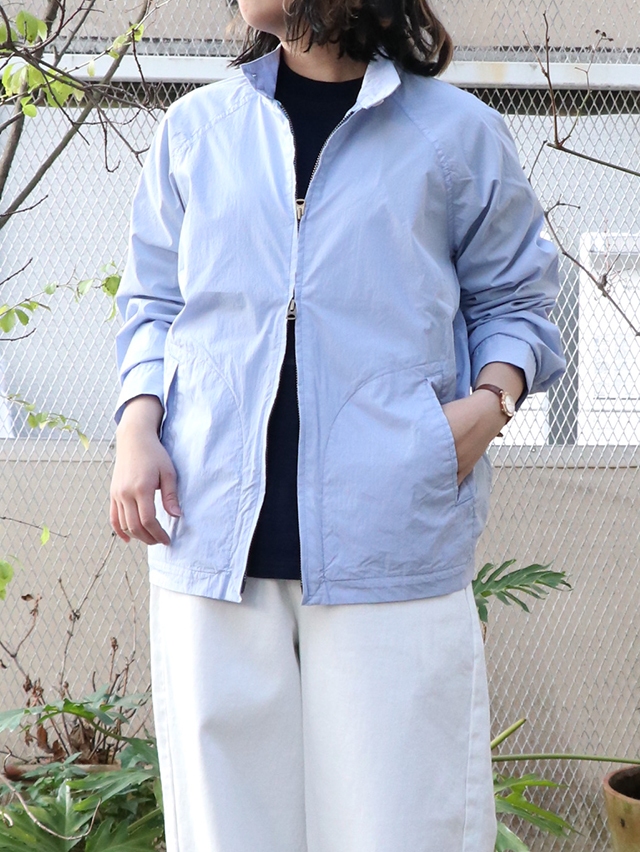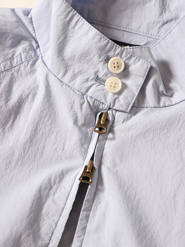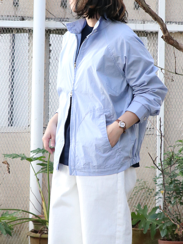 ハリのあるコットンタイプライターからつくるスウィングトップ。この春はややオーバーな作りでご用意しました。フロントはダブルジップになっていて、様々なシルエットで着用可能。春らしい爽やかな一枚です。※実際の色味は着用画像よりご確認下さい。