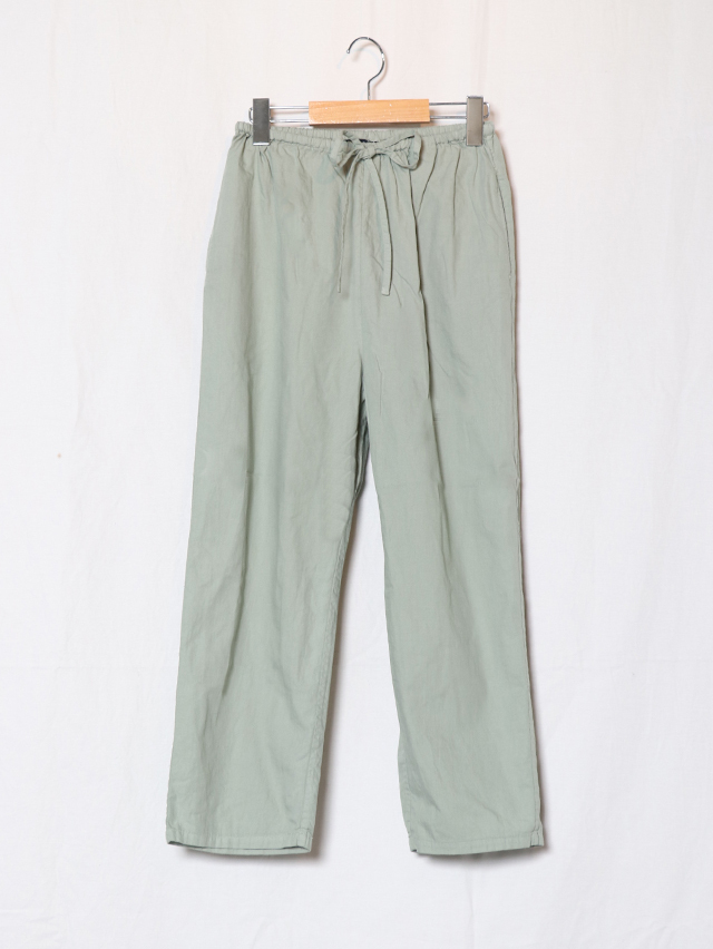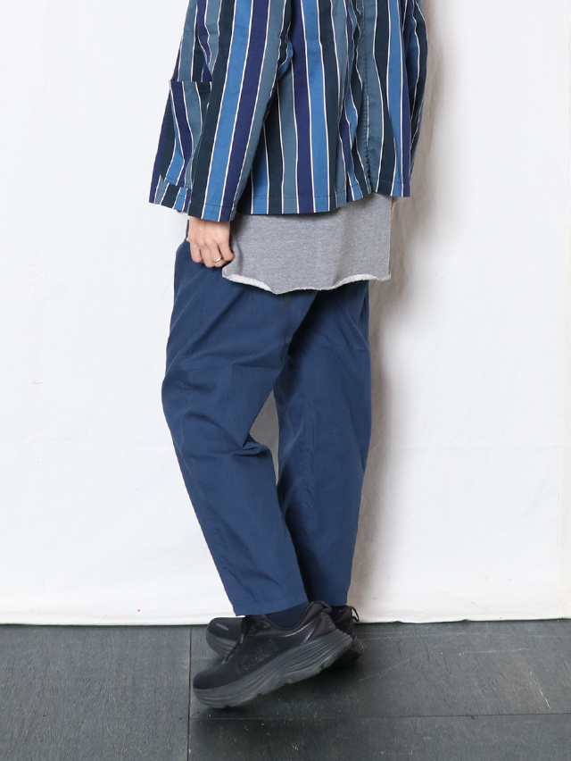 春の新作のレディースボトム、リラックスタイプのクルタパンツを仕立てました。素材はオーガニックコットンを使用したサスティナブル素材。柔らかな肌触りの一枚です。スッキリとしたシルエット。ワンマイルウェアにぴったりな一着に仕上がっています。