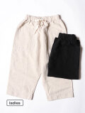 人気のミャオパンツ。薄手でありながら程よい ハリ感があり、ふんわりと軽い風合いが特徴のコットンリネンワッシャー素材でご用意しました。ウエストのリボンと他のラインナップには無いストレートに太いシルエットが特徴的です。