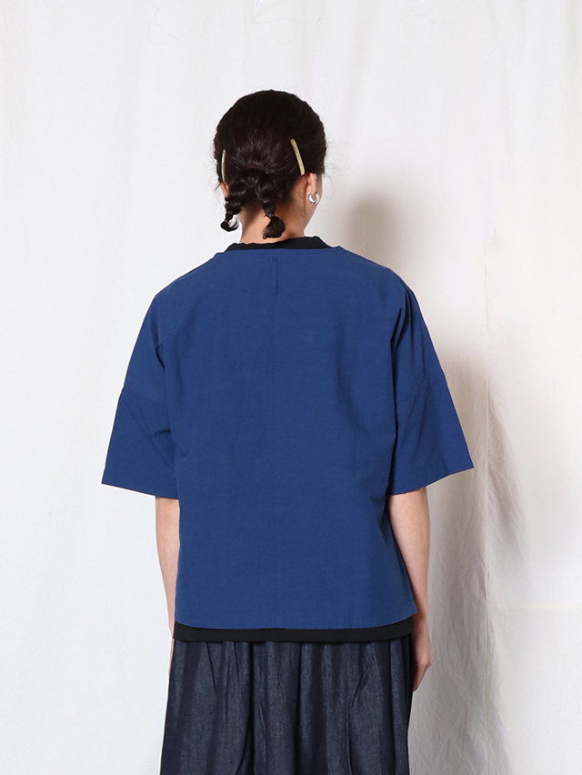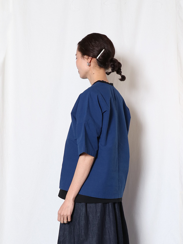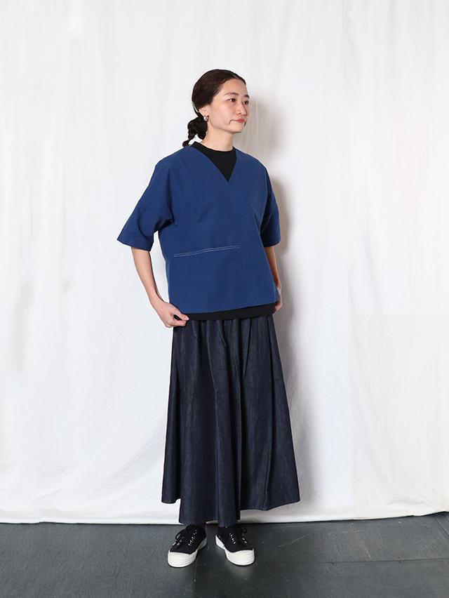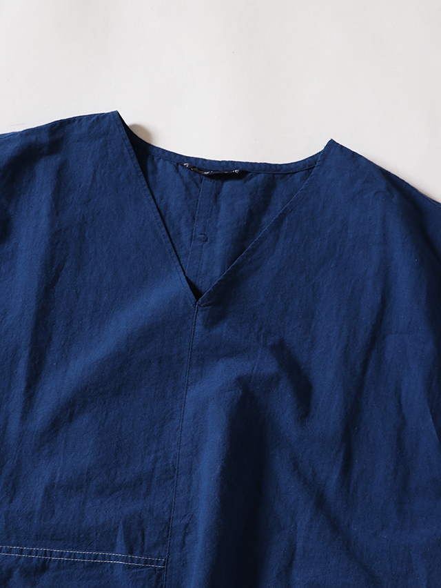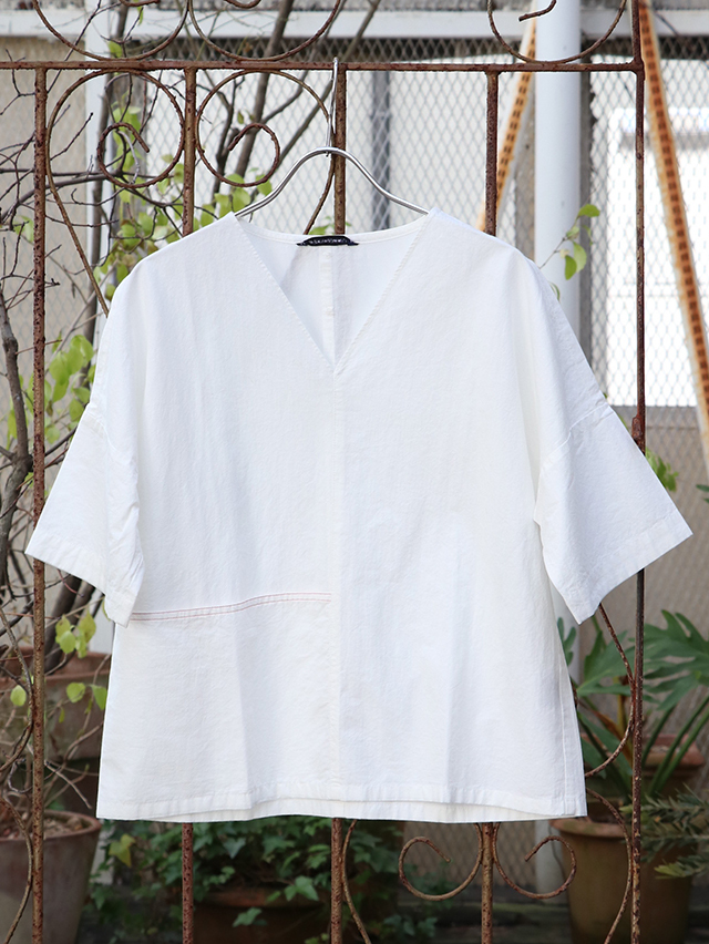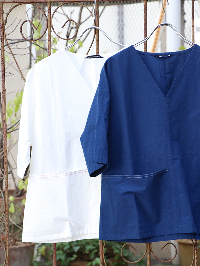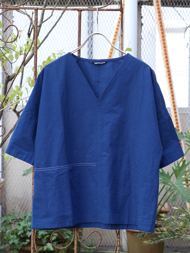コットンリネン素材のさらっとした生地感のブラウス。Vネックタイプでインナーの合せやシャツと重ねても楽しめるアイテムです。切り替えからポケットが付いています。さらりとした肌触りで暑くなる時期にはおすすめのシャツです。