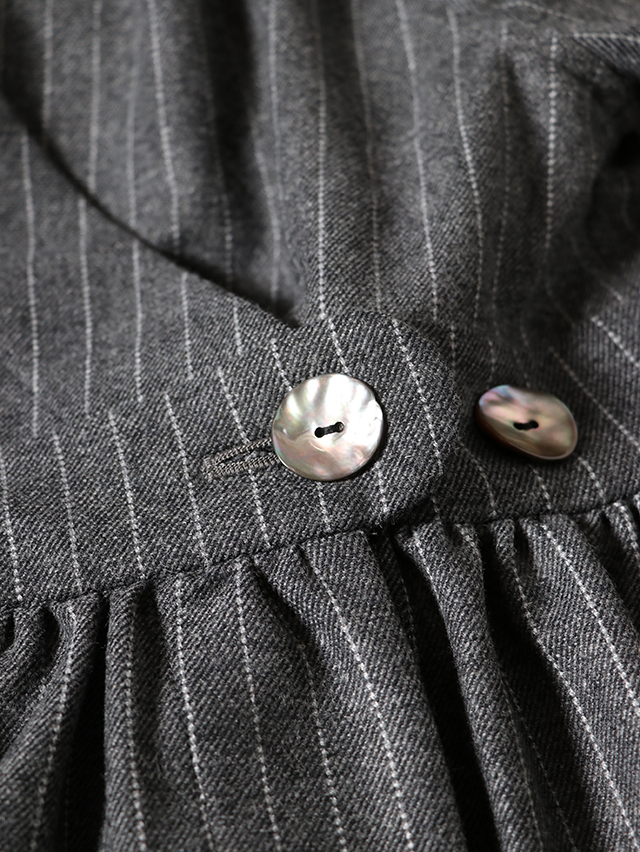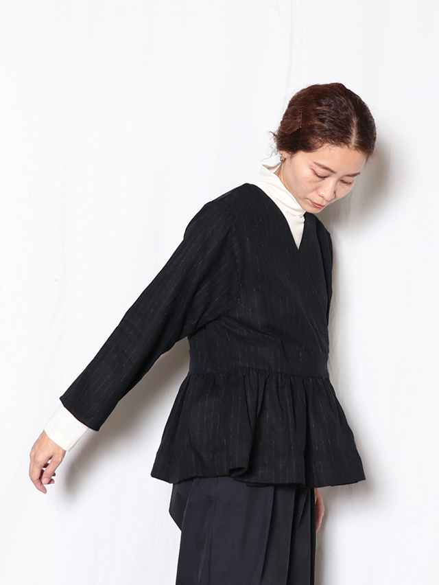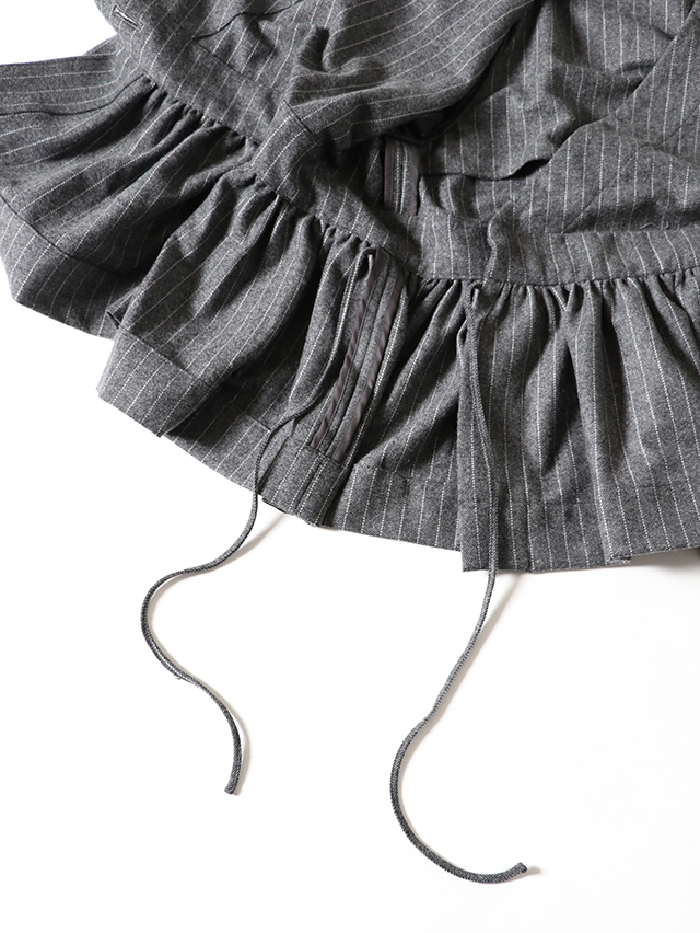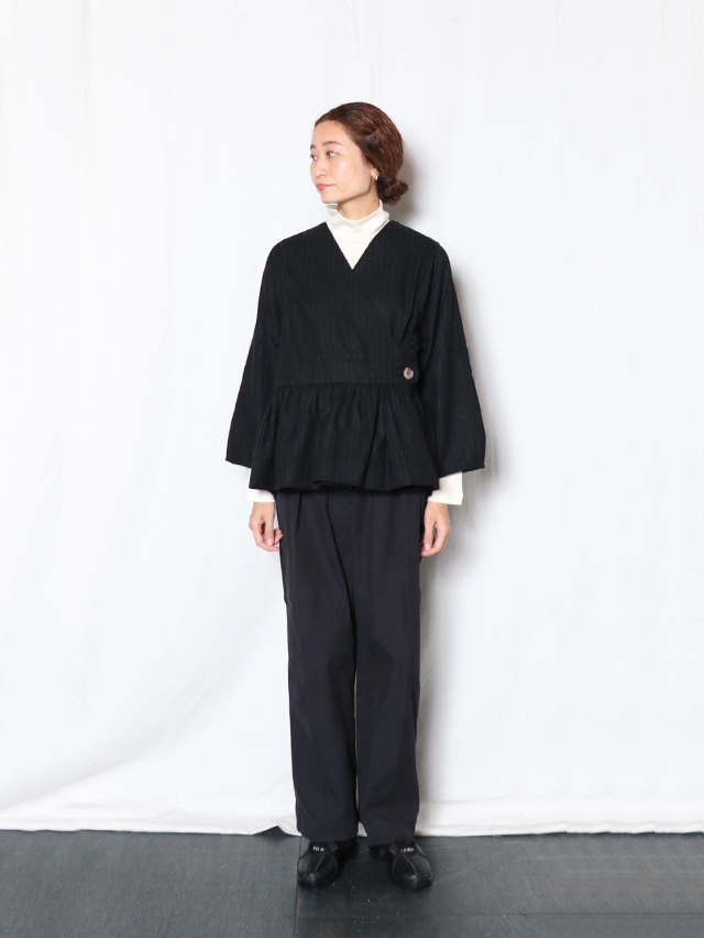 カシュクールタイプのベルトギャザーチュニック。素材はCORDURAナイロン+ウールの混紡糸を紡績。ウールの風合いは最大限に残しながら、CORDURAに備わる耐久性を兼ね備えた素材です。中には紐が付いており、シルエットもボタンの位置を変え、お好みで楽しめます。カットソーやシャツと合わせてコーディネートをお楽しみください。