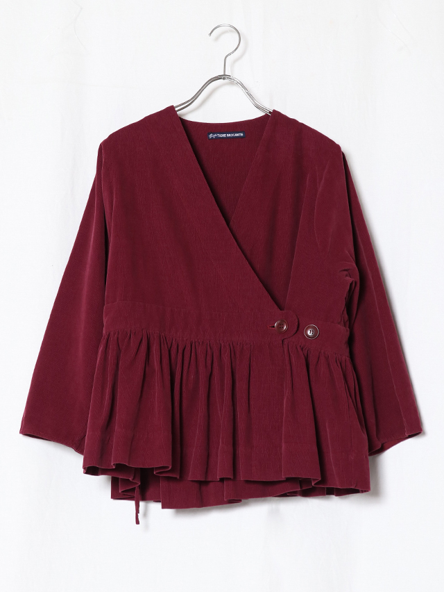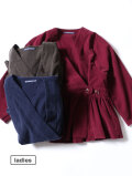カシュクールタイプのベルトギャザーチュニック。素材は江戸時代から伝わる染色技法である東炊きによって染められたシャツコール素材。味わい深い色合いです。中には紐が付いており、シルエットもボタンの位置を変え、お好みで楽しめます。カットソーやシャツと合わせてコーディネートをお楽しみください。