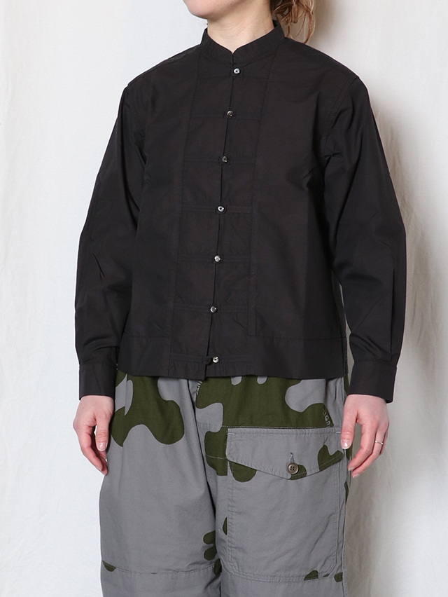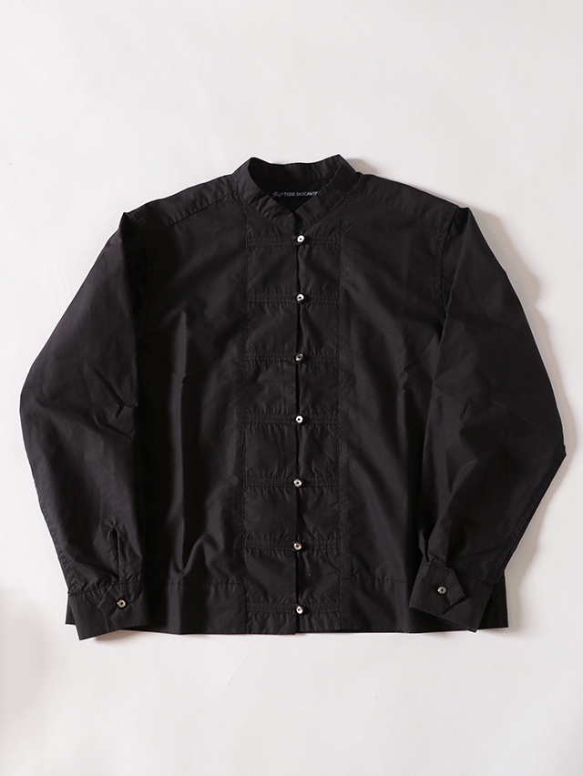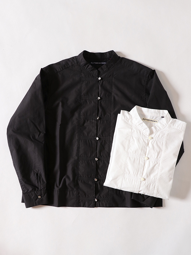 久しぶりに登場のチーパオ釦シャツ。チャイナシャツを模したデザインで、一枚では勿論、羽織りものとしても定評ある一枚です。生地は、表面滑らかで上品な光沢感もあるコットンテンセルでご用意しました。