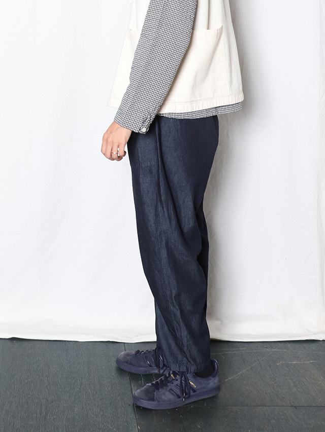 タゴサクとは田を耕す人。そんなインスピレーションから始まったこのパンツは、動きやすいワークな一面を持ちながらも、シルエットに拘り、今の気分を取り入れたボトムスです。ウエストはゴムと紐、ヒップと腿回りにゆとりがあり、そこから裾にかけてのラインが不思議なバランス感の一本。スニーカーやサンダルとカジュアルにお楽しみください。