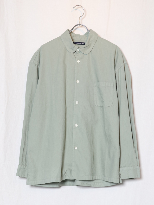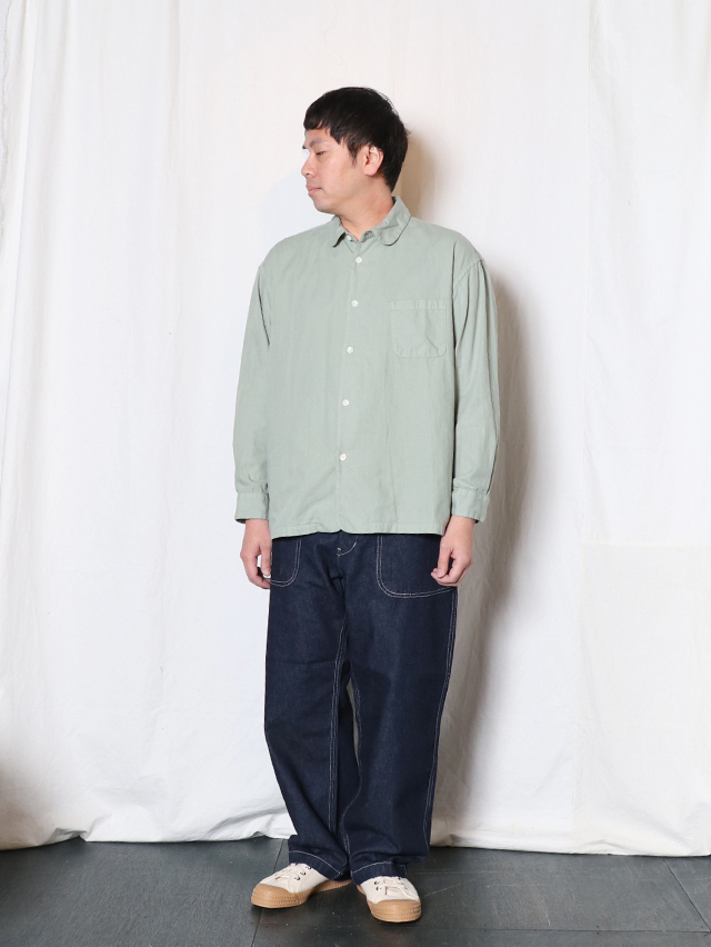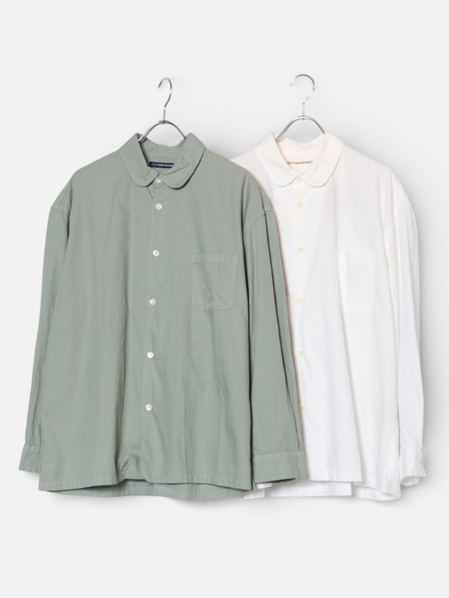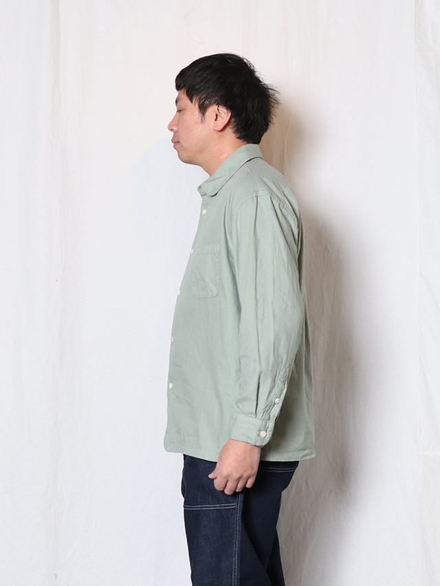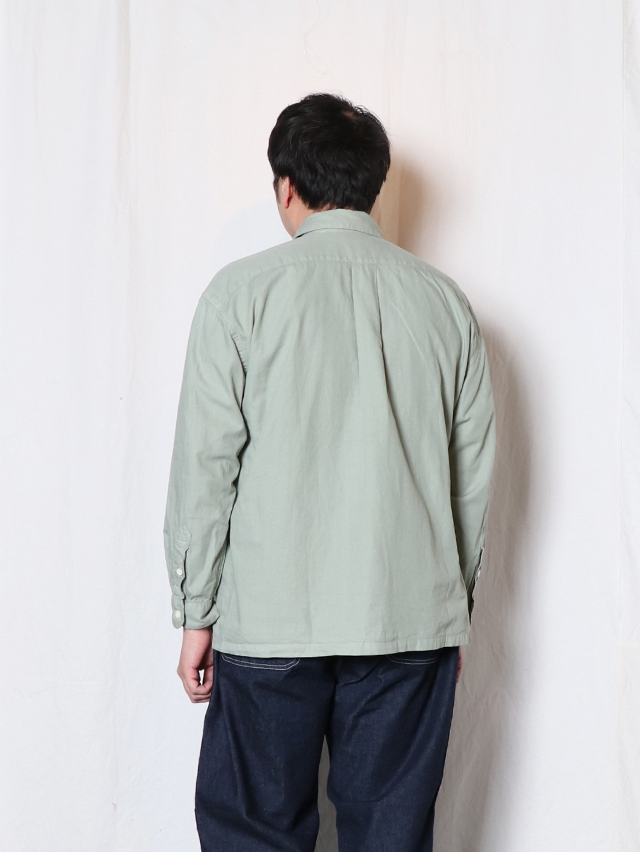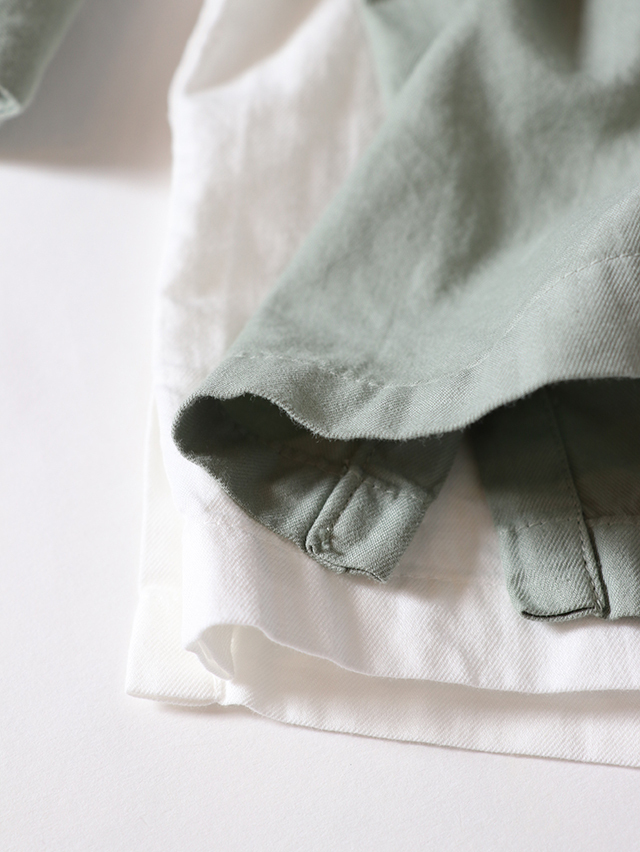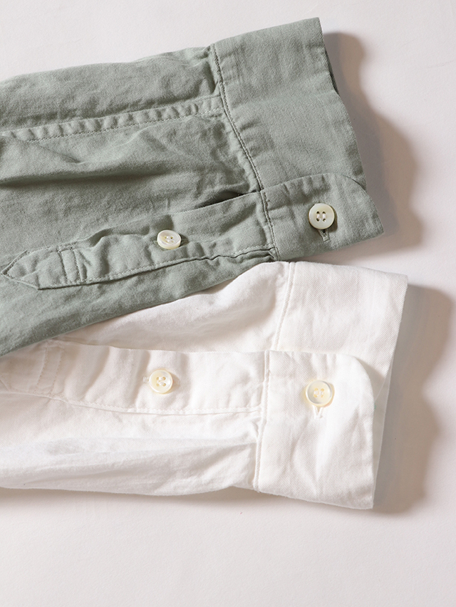 オーガニックコットンのサスティナブル素材から作るユニセックスのシャツ。肩幅身幅とゆとりのあるサイジングのベニスビーチ型でご用意しました。春夏にぴったりなフェードグリーン、定番のホワイトをご用意しました。