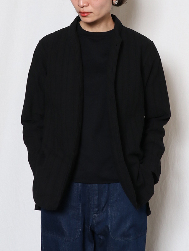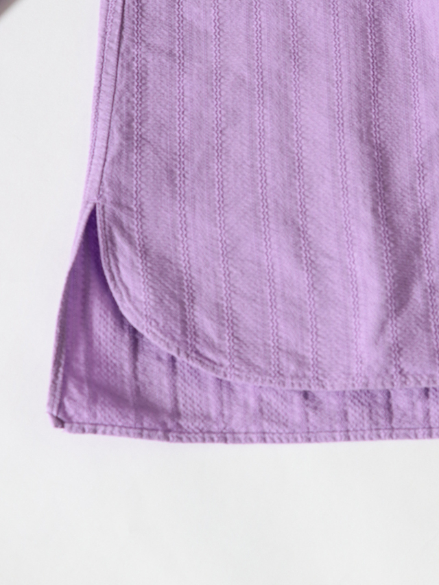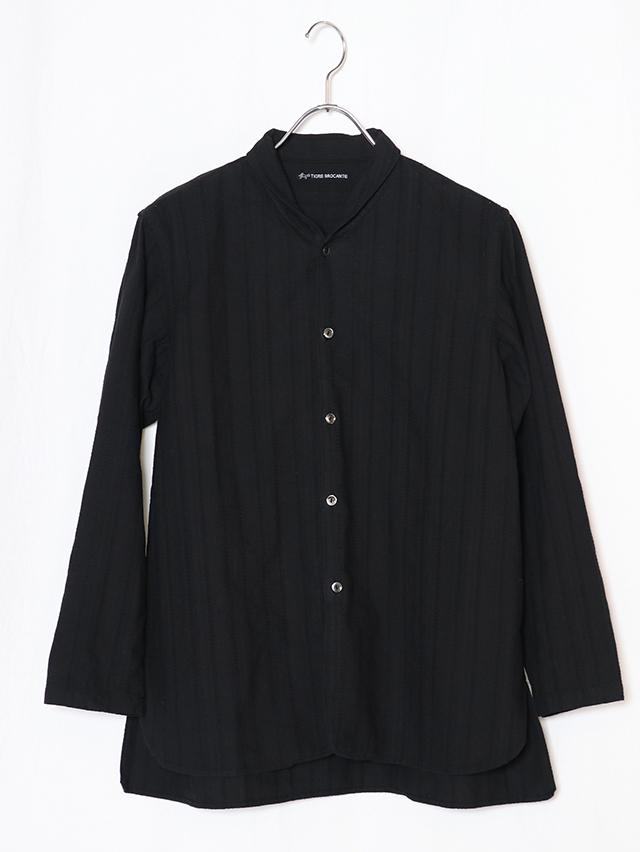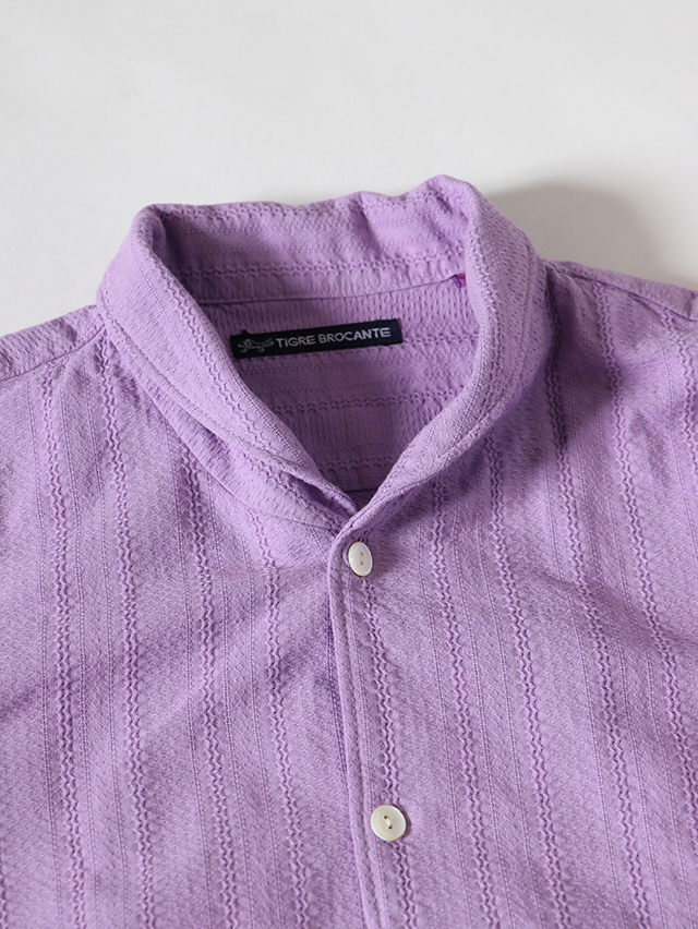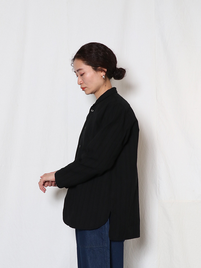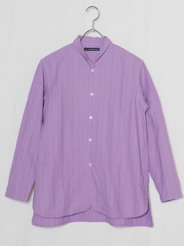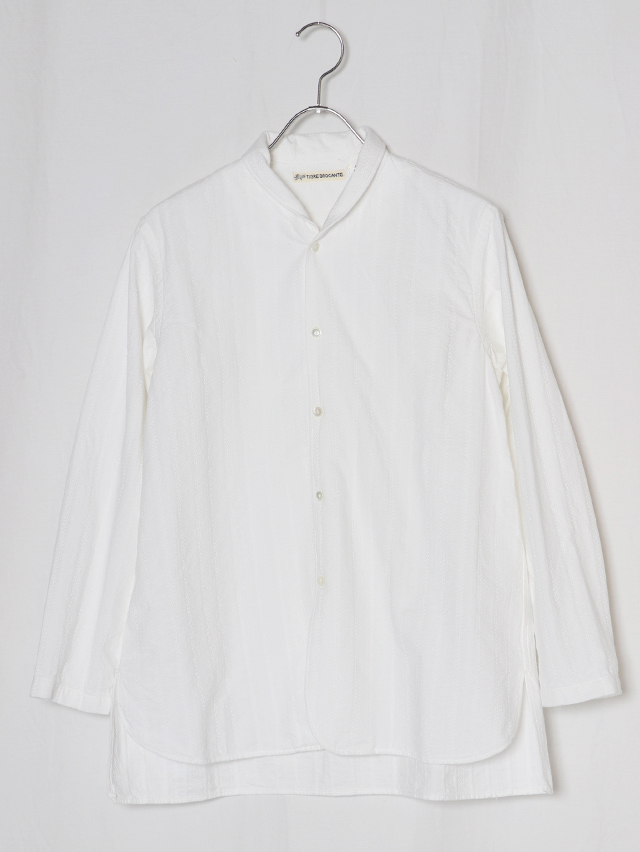 コットンレース素材を使い、仕立てた春のシャツ。ショールカラータイプに前身頃の裾のラウンドが特徴的。着丈は長めでご用意しました。春の装いに軽く羽織れる一枚です。