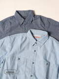 爽やかなシャンブレーシャツが到着しました。今回は4.5オンスシャンブレー、柔らかな肌触りと、霜降り調の表情ある一枚。形はレギュラーシャツ、一枚で程よくすっきり着用頂けるサイズ感です。