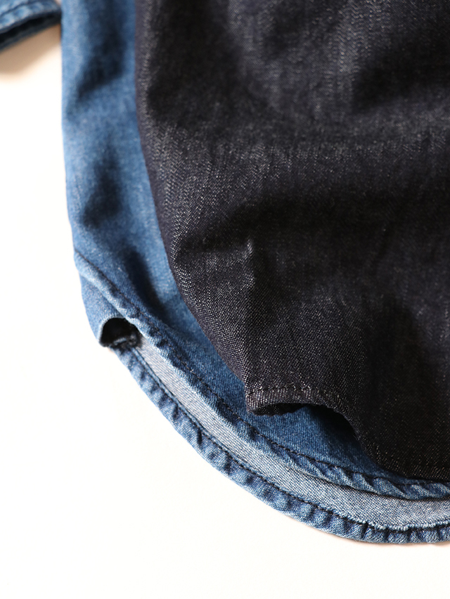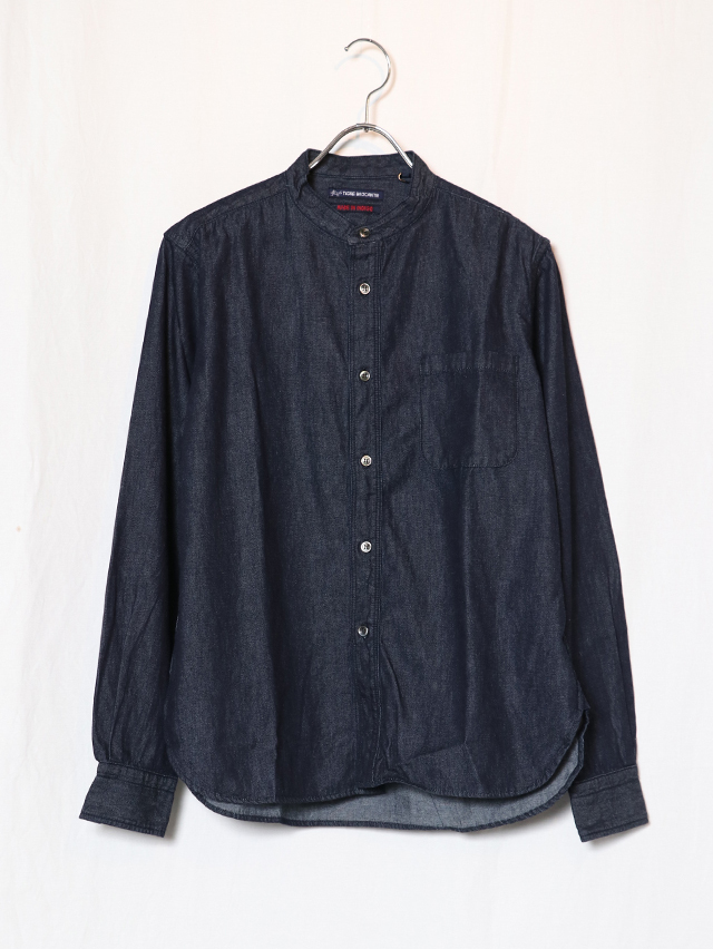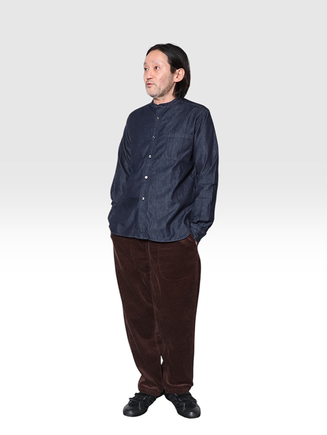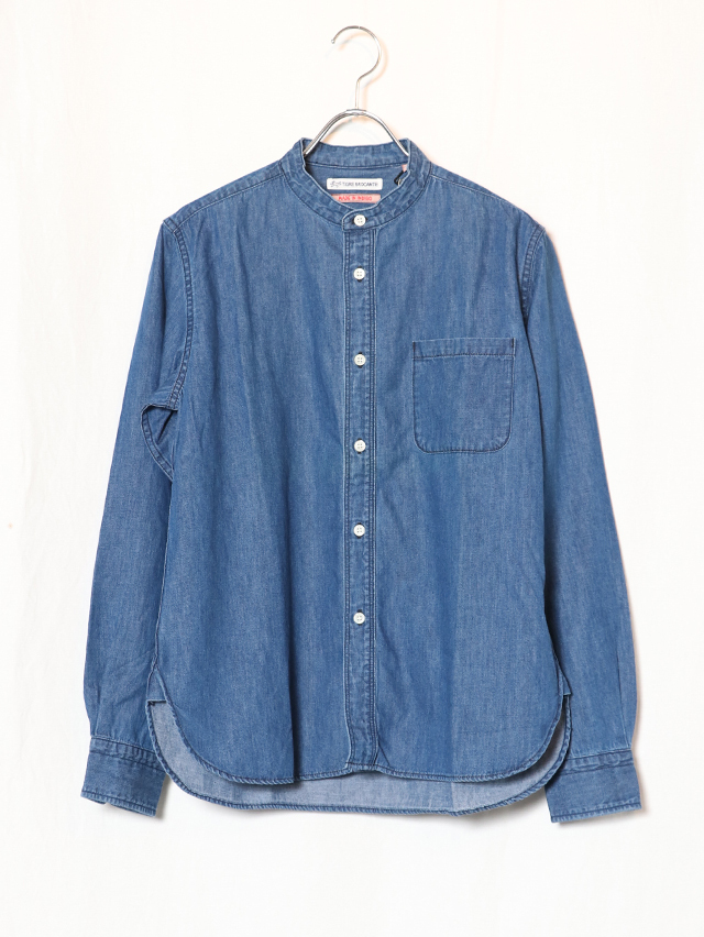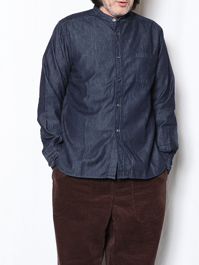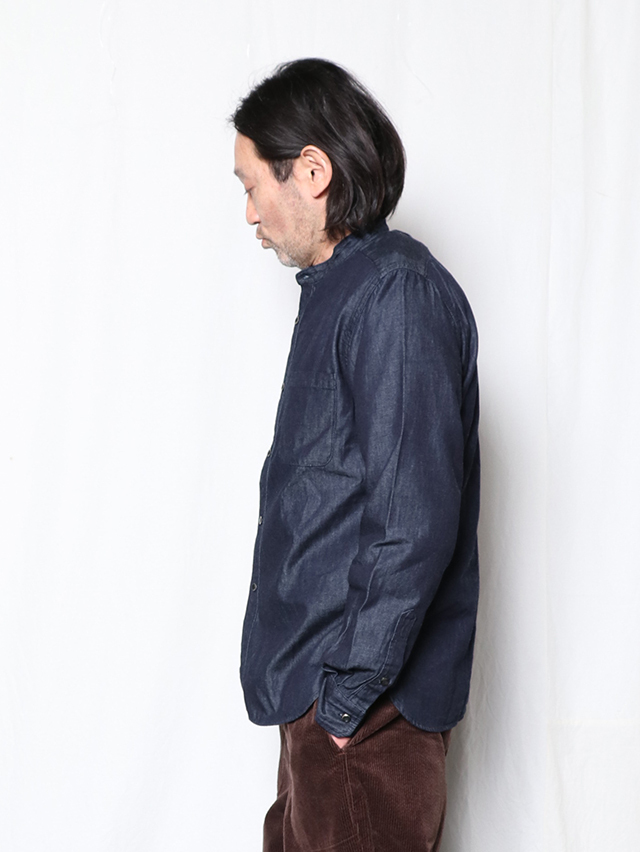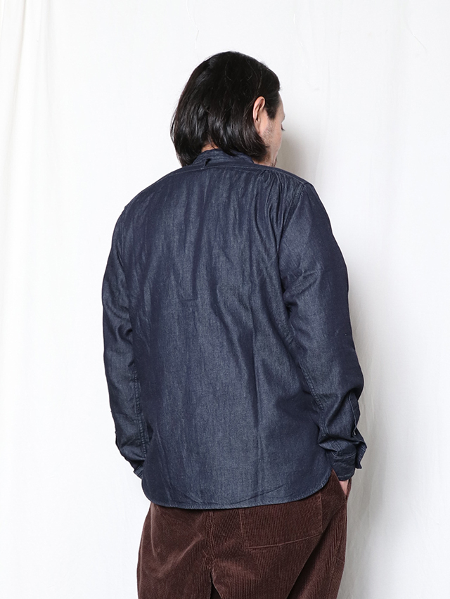 人気のスタンドカラーシャツ、オールシーズン使える6オンスのデニム生地でご用意しました。どんなスタイリングにも合わせやすいサイズ感、久しぶりの登場です。※レディース着用はサイズ感例です。商品は個体画像よりご確認ください。
