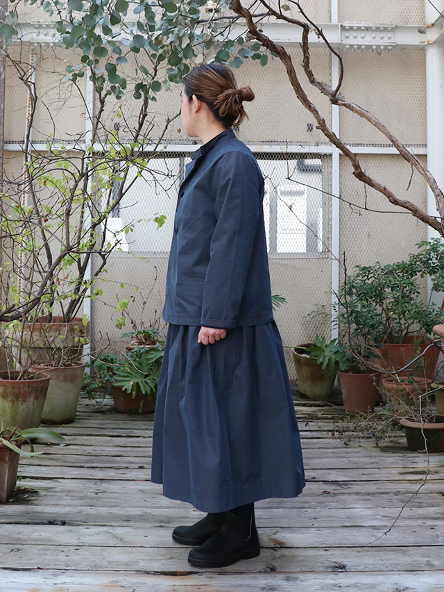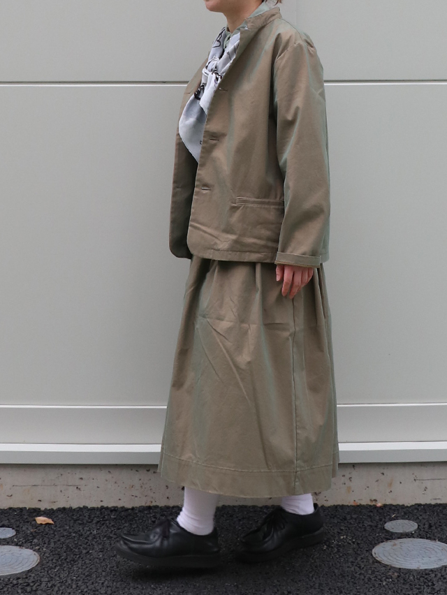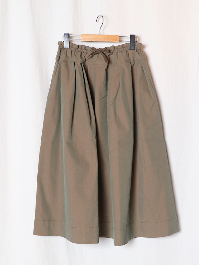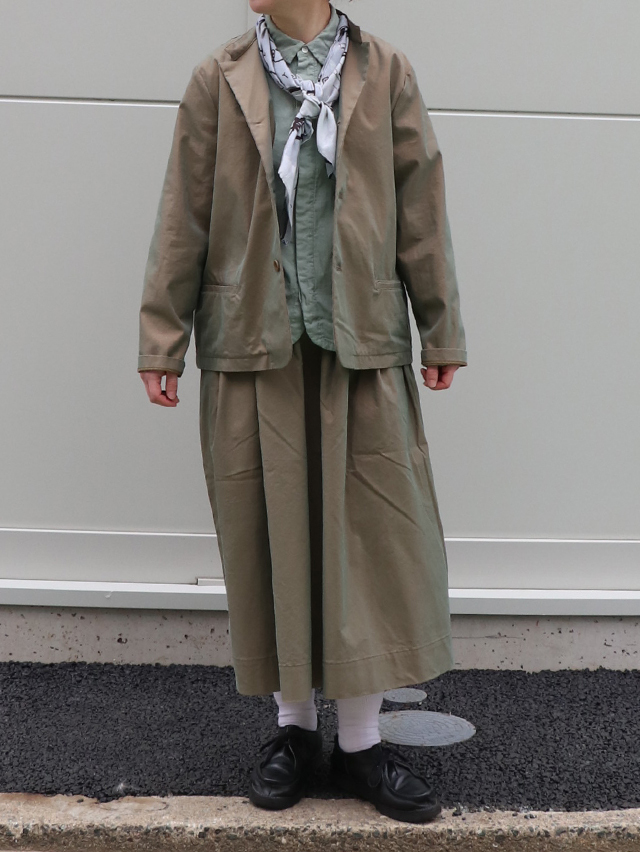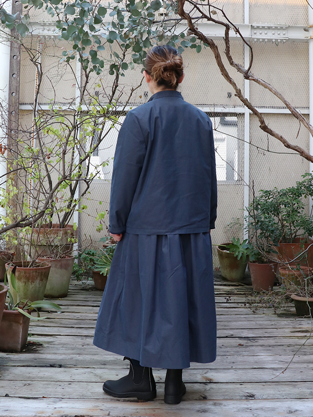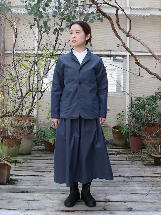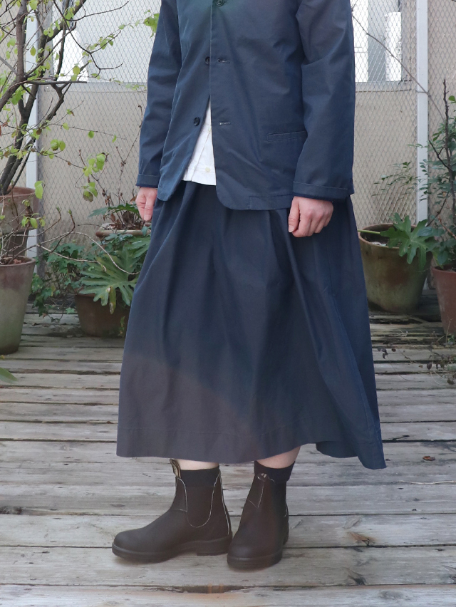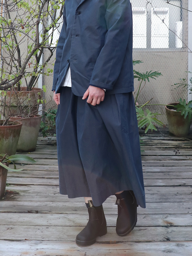 角度や光の反射によって、深みある色彩が感じられる玉虫ギャバ。しなやかさの中にハリ感も感じられる生地です。形は定番のフィセルロングスカートをご用意しています。同生地のジャケットと合わせて、オケージョン用途としてもおすすめ出来る一枚です。
