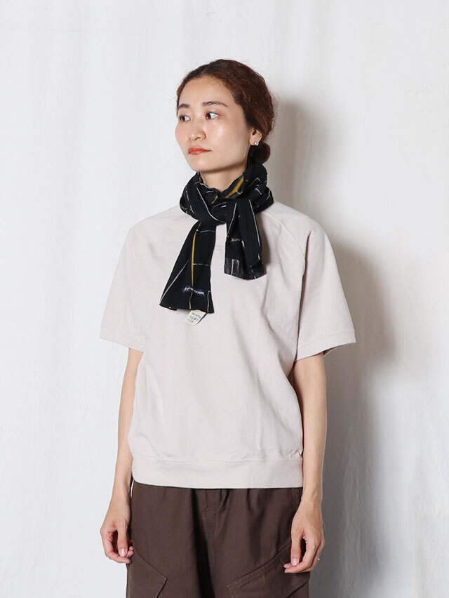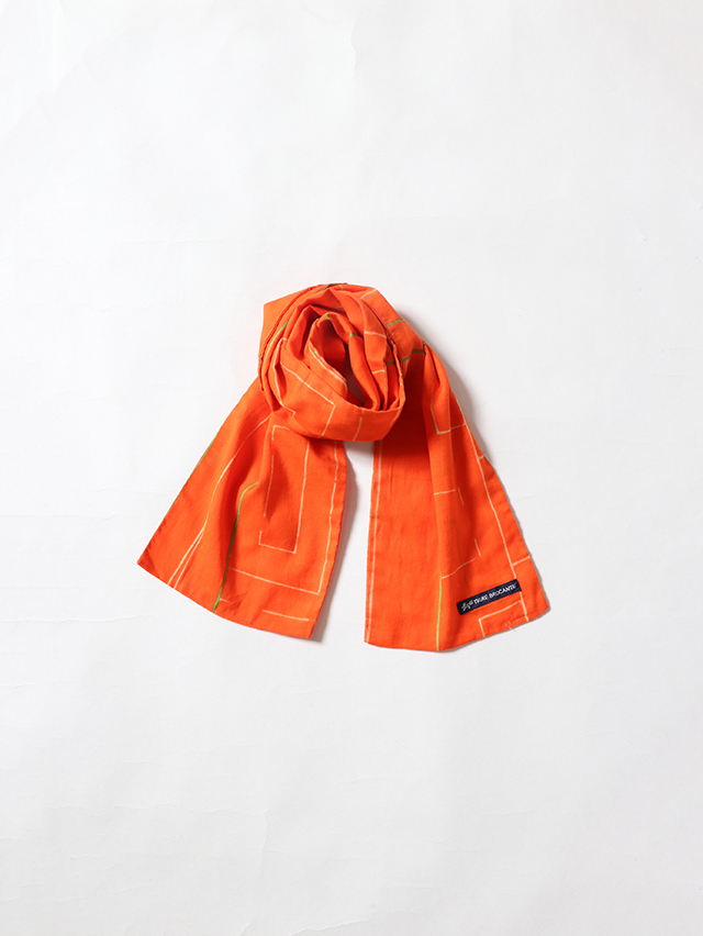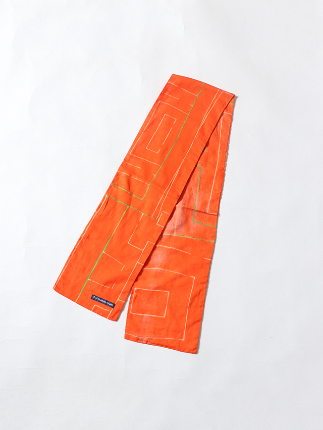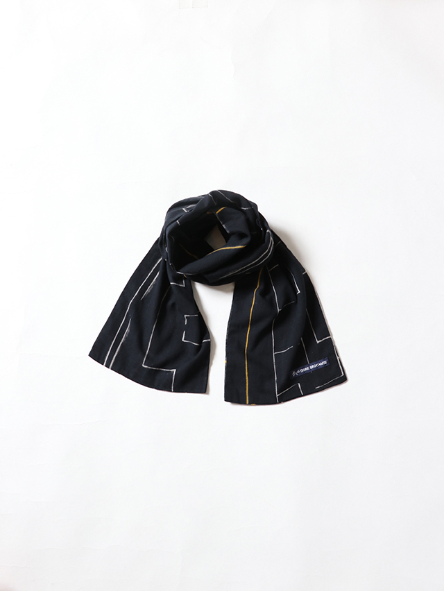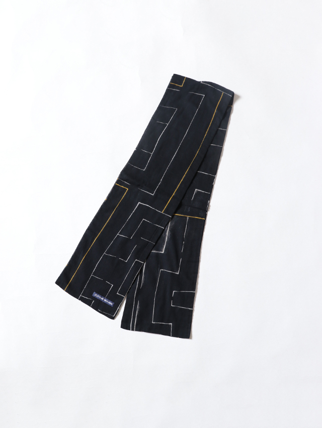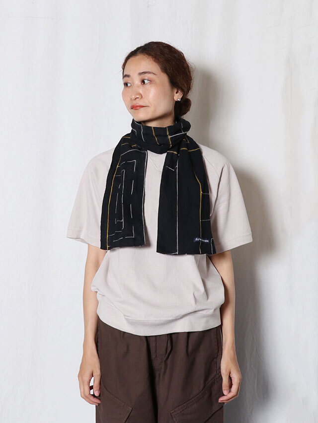 熊本の自然や風土に根差した作品を生み出し続けた抽象画家、坂本善三氏の作品「黒の構成」より。原画のイメージや色の濃淡を手捺染プリントにより再現。肌当たりも柔らかく程よいボリューム感。首もとのアクセントや日除けに、ギフトとしてもオススメです。 ※柄の出方は異なります。