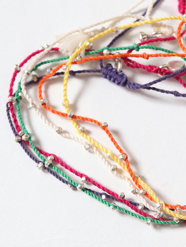タイのシルバーやガラスビーズを使用したアクセサリーシリーズ。カレン族によって手作業で作られたシルバーを組みあわせてデザインしたブレスレットが出来上がりました。一つ一つ表情が異なり、温かみのある質感をお楽しみ下さい。