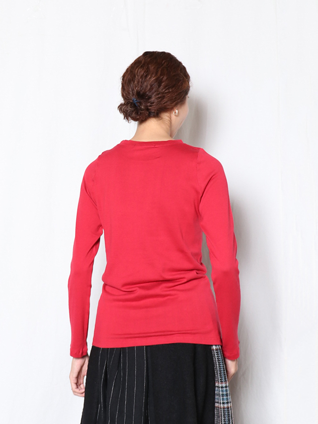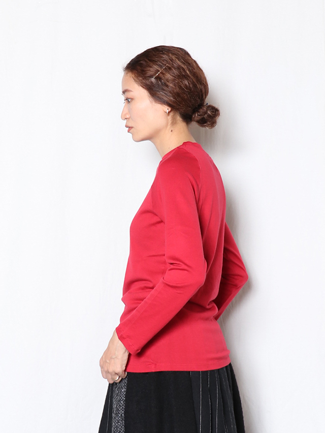 柔らかな肌触りのコットンニット天竺から作る、シンプルな長袖T。程よくフィットし着心地の良い一枚です。シンプルですが着ていてしっくりくるアイテム。今年はターコイズ、レッド、ナチュラルの3色をご用意しました。秋の装いにぜひお楽しみ下さい。