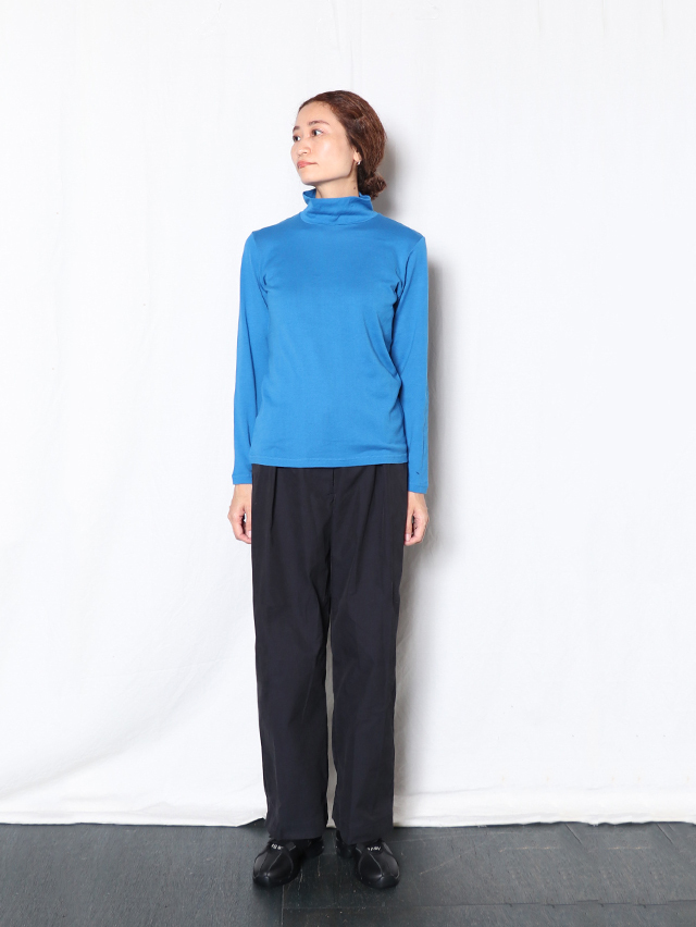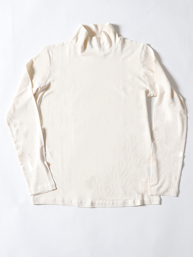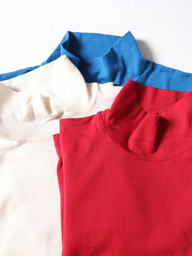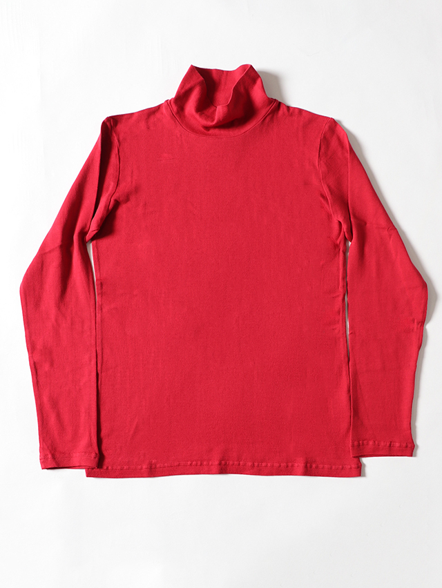 柔らかな肌触りのコットンニット天竺から作る、シンプルなレディースタートルネック長袖T。程よくフィットし着心地の良い一枚です。シンプルですが着ていてしっくりくるアイテム。今年はターコイズ、レッド、ナチュラルの3色をご用意しました。秋の装いにぜひお楽しみ下さい。