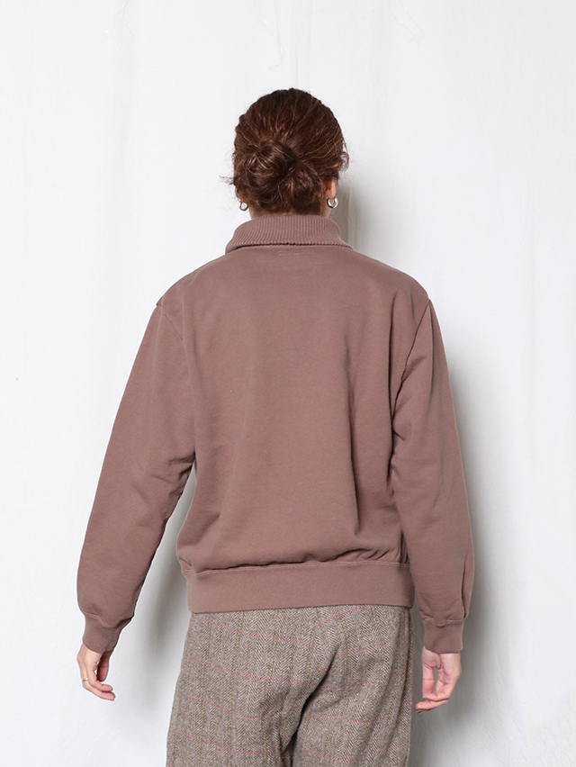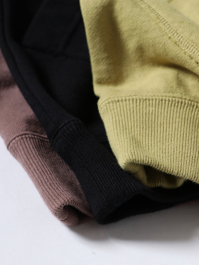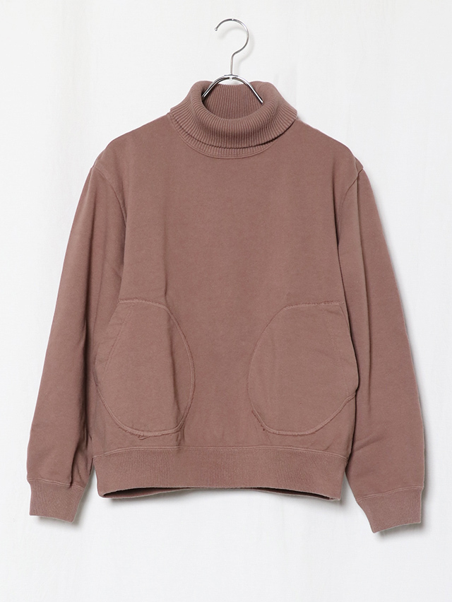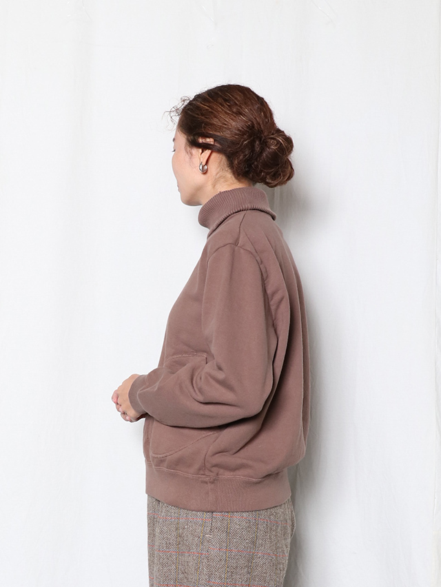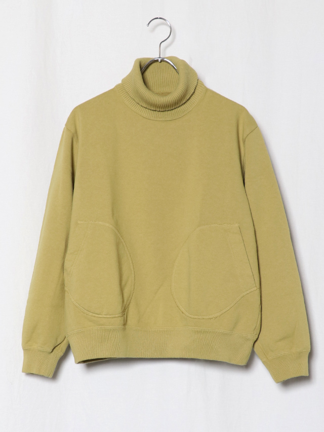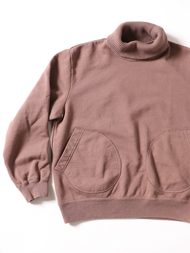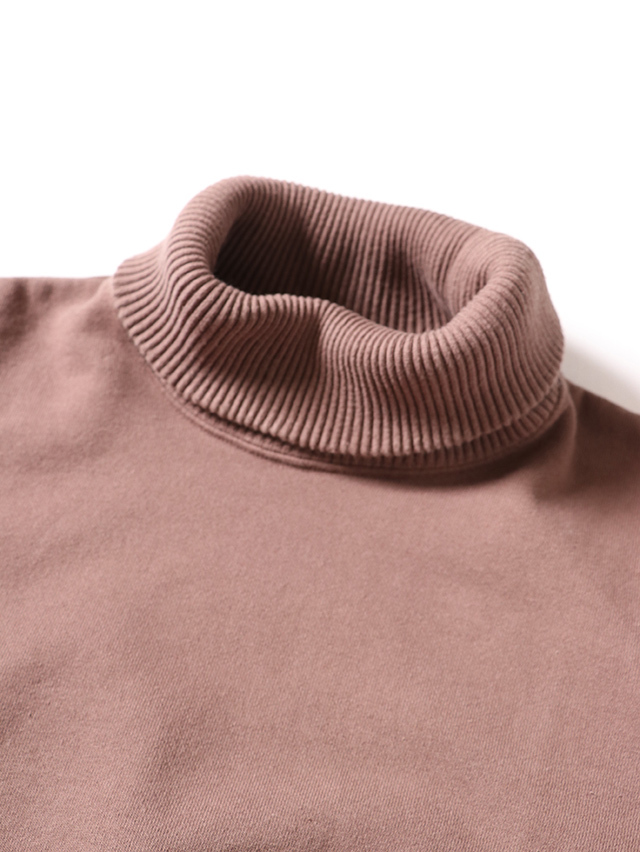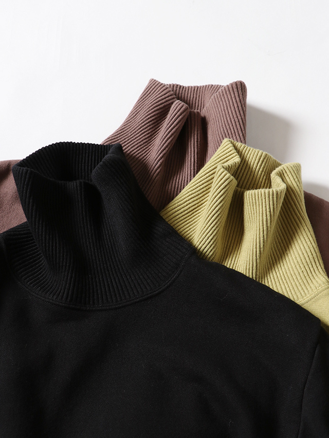 吸水性に優れたドライな質感のBD裏毛。肌心地が良くふわりと肌に馴染む素材です。形はタートルネックとパッチポケットが特徴のスウェットをご用意しました。首元のフィット感、コンパクトなサイズはアウターに響かず、あたたかさも兼ね備えた一枚です。