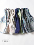 着なくなったサリーの生地を重ねて手作業で一針一針刺し子を施す、インドのカンタ刺繍生地。パッチワーク生地に刺し子が施された特別なファブリックでビッグポケットベストをご用意しました。いつものコーディネートにプラスしてお楽しみ下さい。パッと目を引く印象的な一着です。