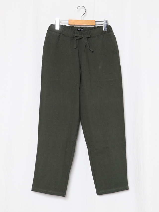定番人気のヘビーオンスカットソー生地、ミディアムハード天竺を使ったスウェットパンツが出来上がりました。部屋着のような楽な履き心地ですが、意外に履くとスッキリシルエット。季節の変わり目の一枚に嬉しいアイテムです。