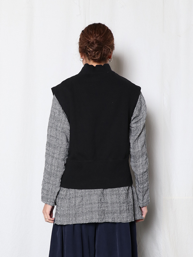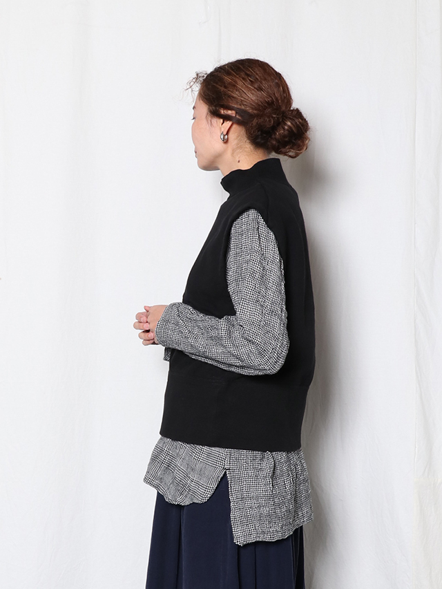 新作のプルオーバータイプ、レディースベストが出来上がりました。首元のリブと裾は広めのリブを使ったデザインです。素材は吸水性に優れたドライな質感の裏毛素材。肌心地が良くふわりと肌に馴染む素材です。レイヤリング、コーディネートにプラスしてお楽しみください。