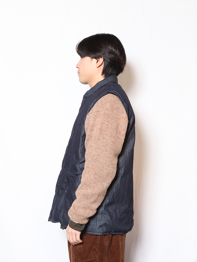 TOPユニセックス Unisex SHIRTS シャツ 6オンスデニムダウンオープンZIPベスト 価格: ¥38,500 (税込) 販売期間: color: 選択してください インディゴ size: 選択してください Mens M 数量: 枚 colorsize在庫インディゴMens M△ 返品についての詳細はこちら 商品説明 薄手のデニム素材に中綿を入れたベストが入荷しました。中綿入りながらすっきりとした着心地。上からアウターも羽織れるサイズ感になっています。裏地はナイロンになっています。 サイズ 着丈 肩幅 身幅 裾幅 Mens M 71.0cm 45.0cm 122.0cm 122.0cm ※()内はゴムを伸ばした寸法です ※洗いの加工により若干の誤差があります 商品詳細 ■カラー:インディゴ ■サイズ:Mens M ■混率:表C100%中綿ダウン80%フェザー20%裏P100% ■生産国:MADE IN NEPAL ■着用:> 男性スタッフ(身長168cm 胸囲89cm 肩幅44cm) ブラック Mens Mサイズ着用 ○コーディネートに使用したアイテム ※お使いのブラウザやモニタの環境によって実際のカラーと若干異なる場合がございます。ご理解の上でご注文ください。商品は加工の関係上、サイズに若干の誤差がございます。 コーディネート一覧 コーディネートをもっと見る >