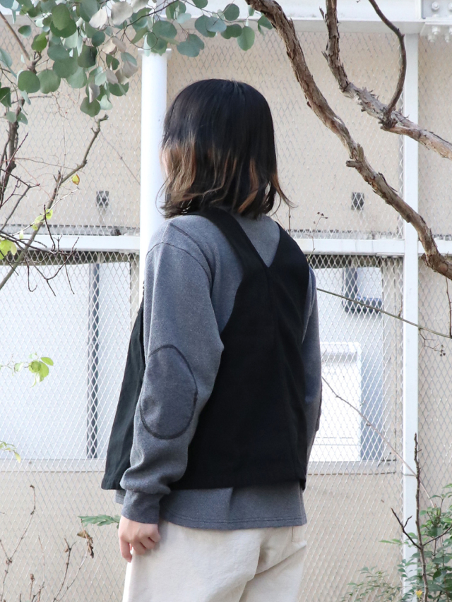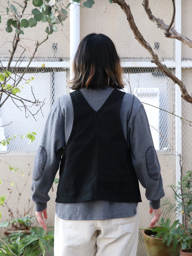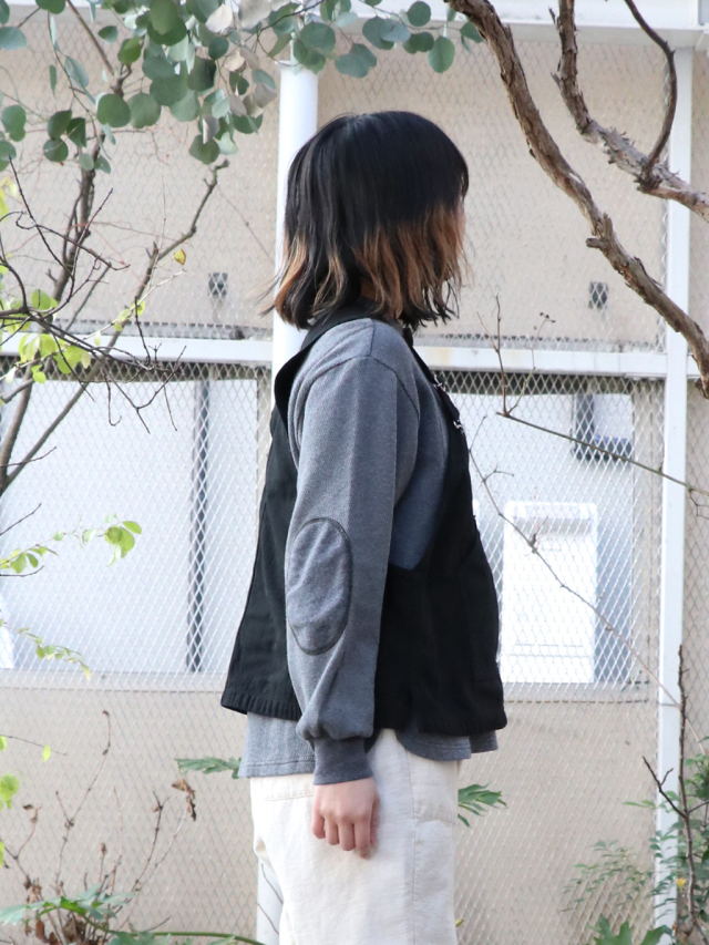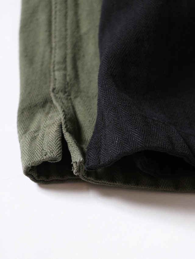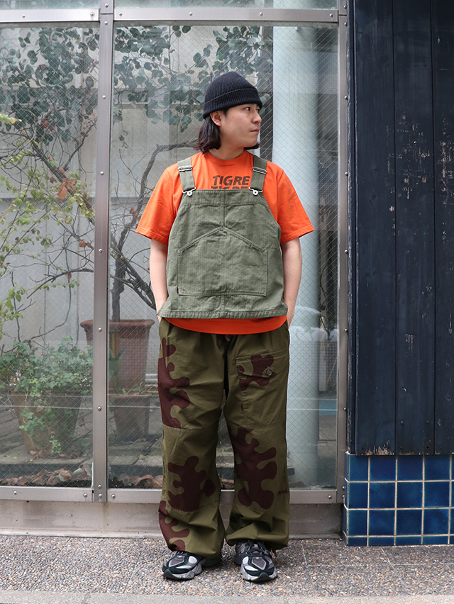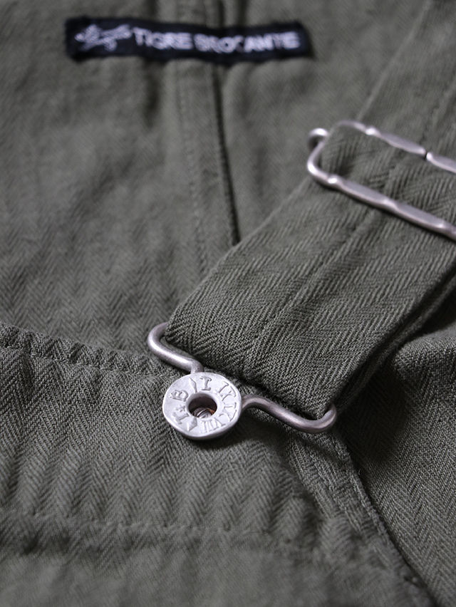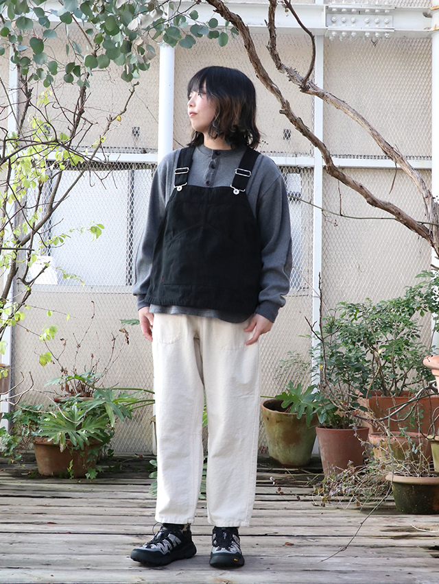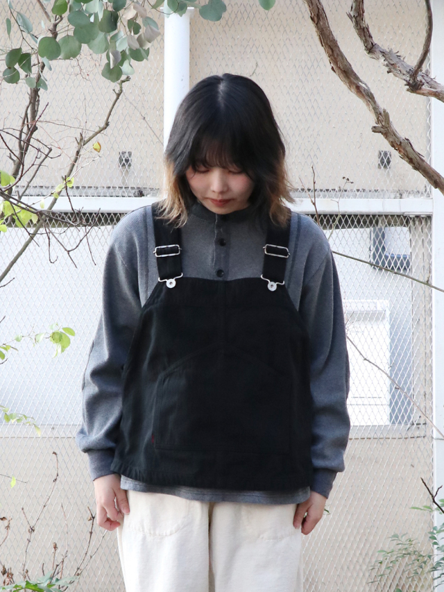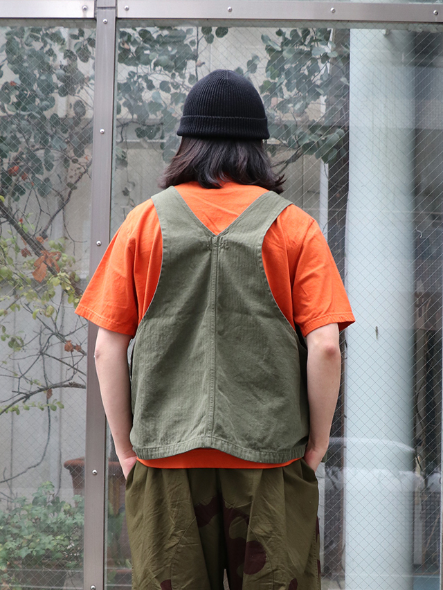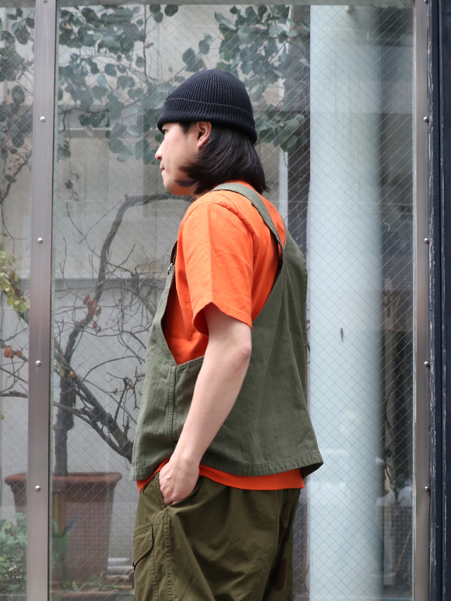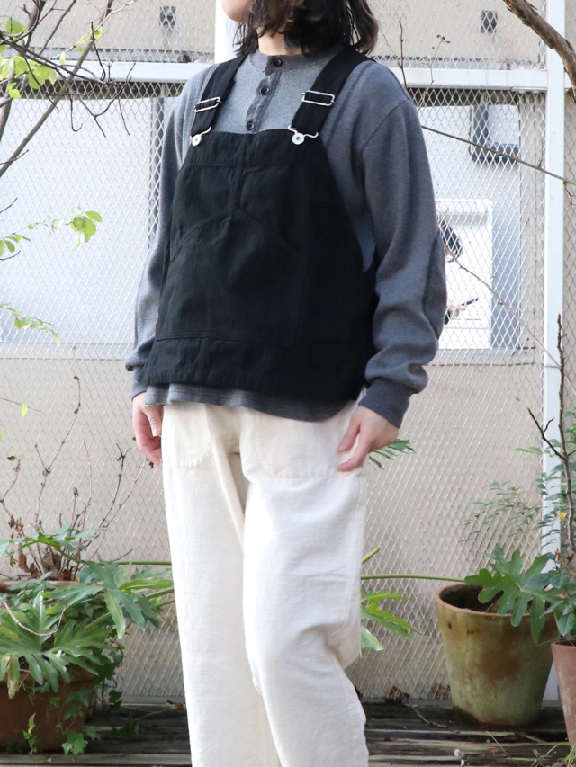 毎シーズン人気のビブベスト。今回の素材はコットンヘリンボン生地をご用意しました。洗うたびに風合いが増していき、シーズンレスに楽しめる一枚です。いつものコーディネートにプラスしてお楽しみください。(カラーは商品単体画像よりご確認ください。)